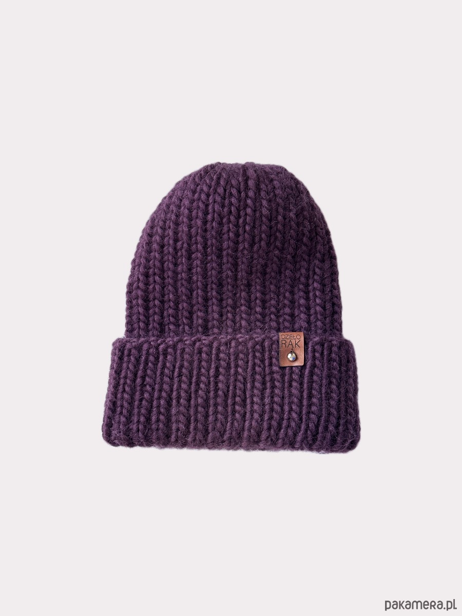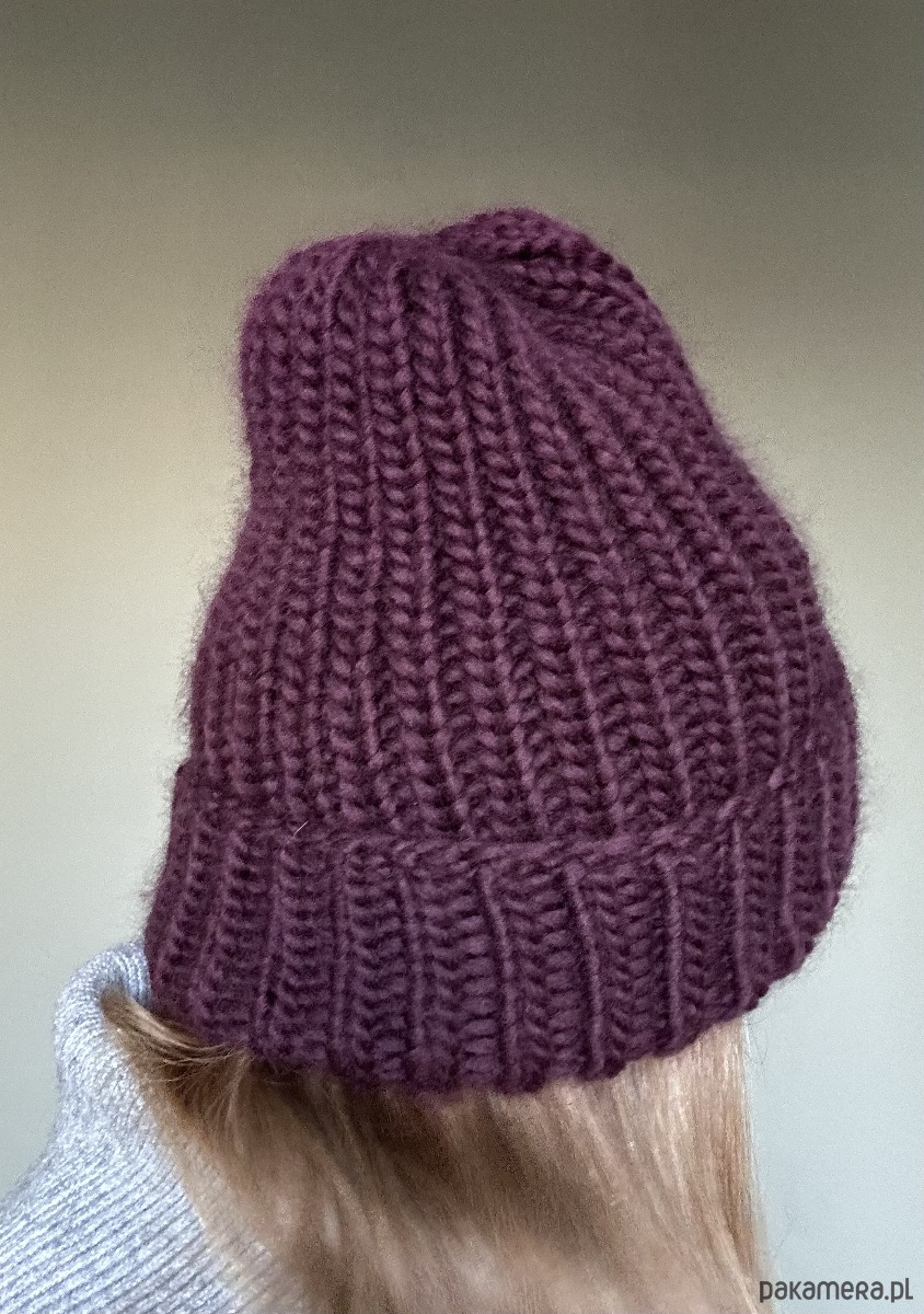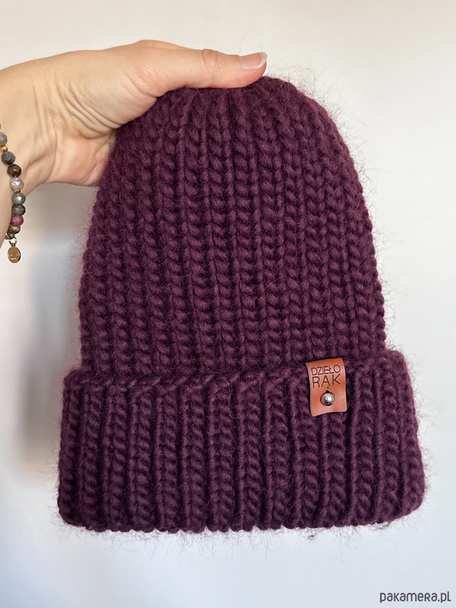 Gruba wełniana czapka oversize z bardzo szerokim wywinięciem - burgund