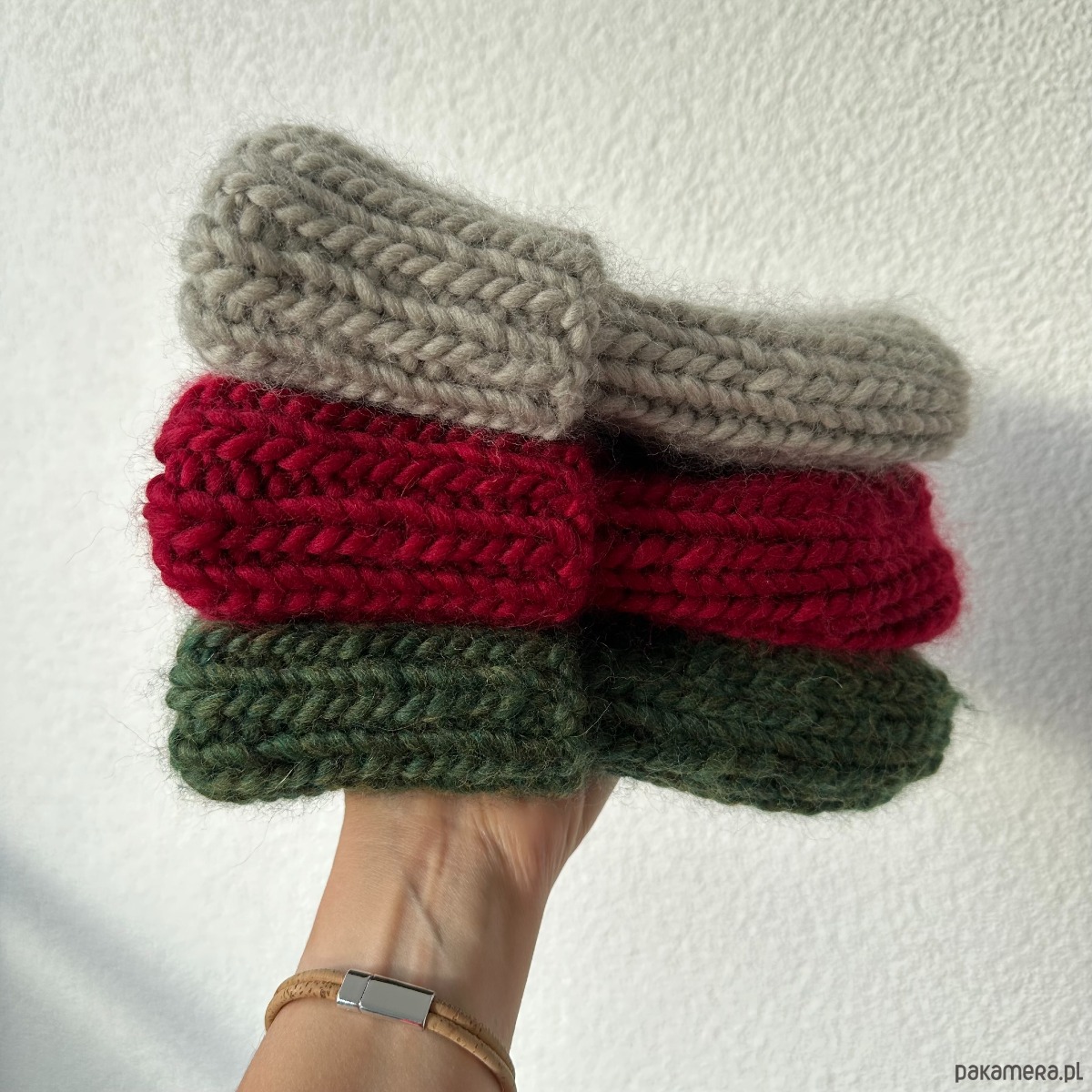 Ciepła czapka wzrobiona na drutach z grubej, miękkiej i naturalnej 100% wełny peruwiańskiej wysokiej jakości.