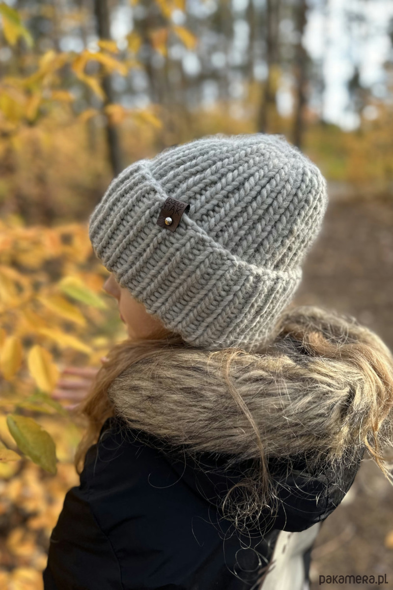 Gruba wełniana czapka oversize z wywinięciem - kolor do wyboru