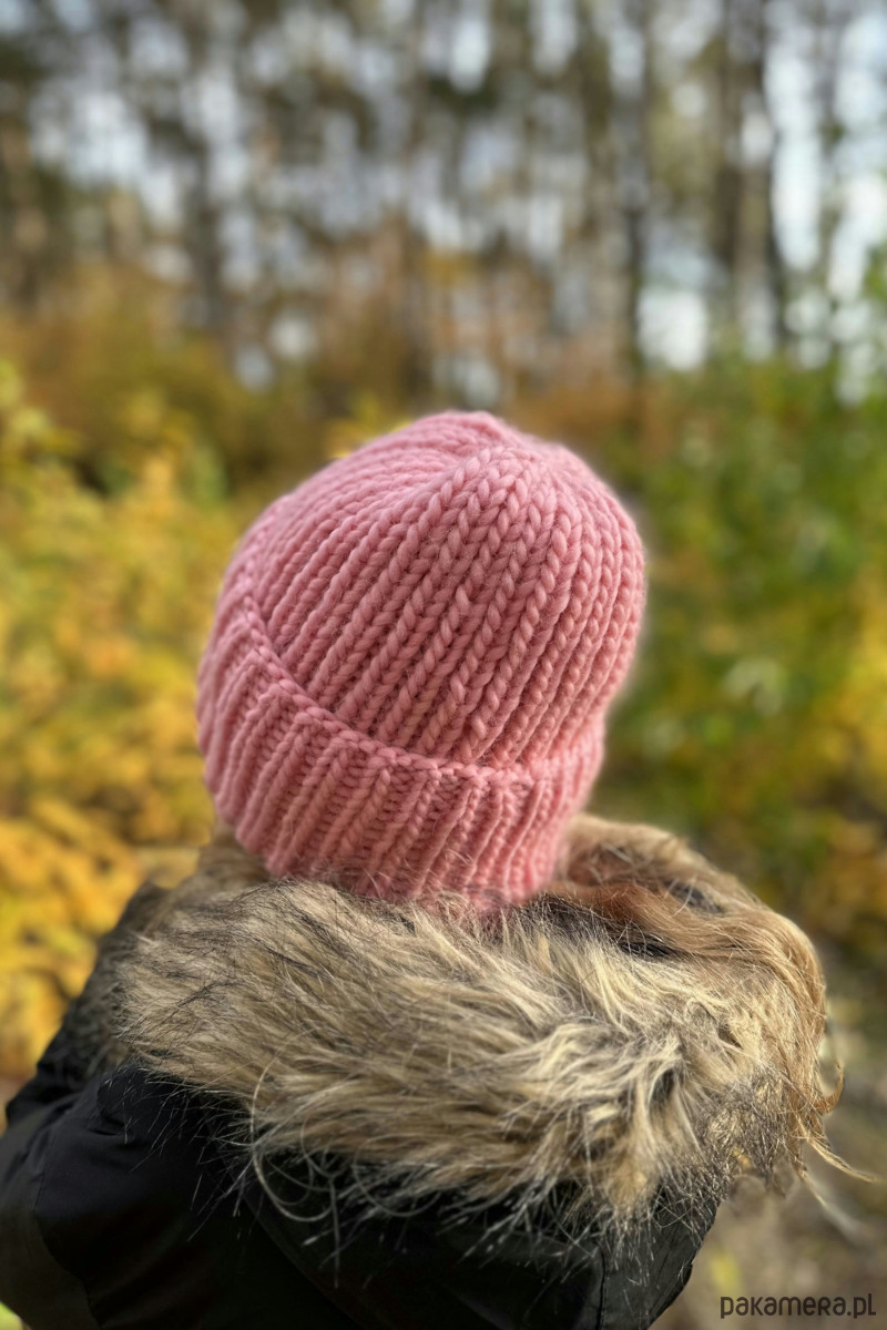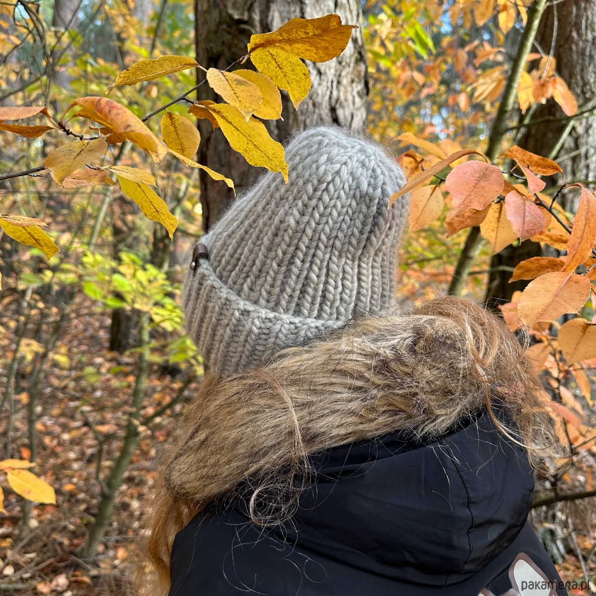 Ciepła czapka zrobiona na drutach z grubej, miękkiej i naturalnej 100% wełny peruwiańskiej wysokiej jakości.