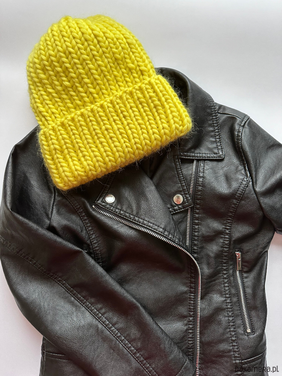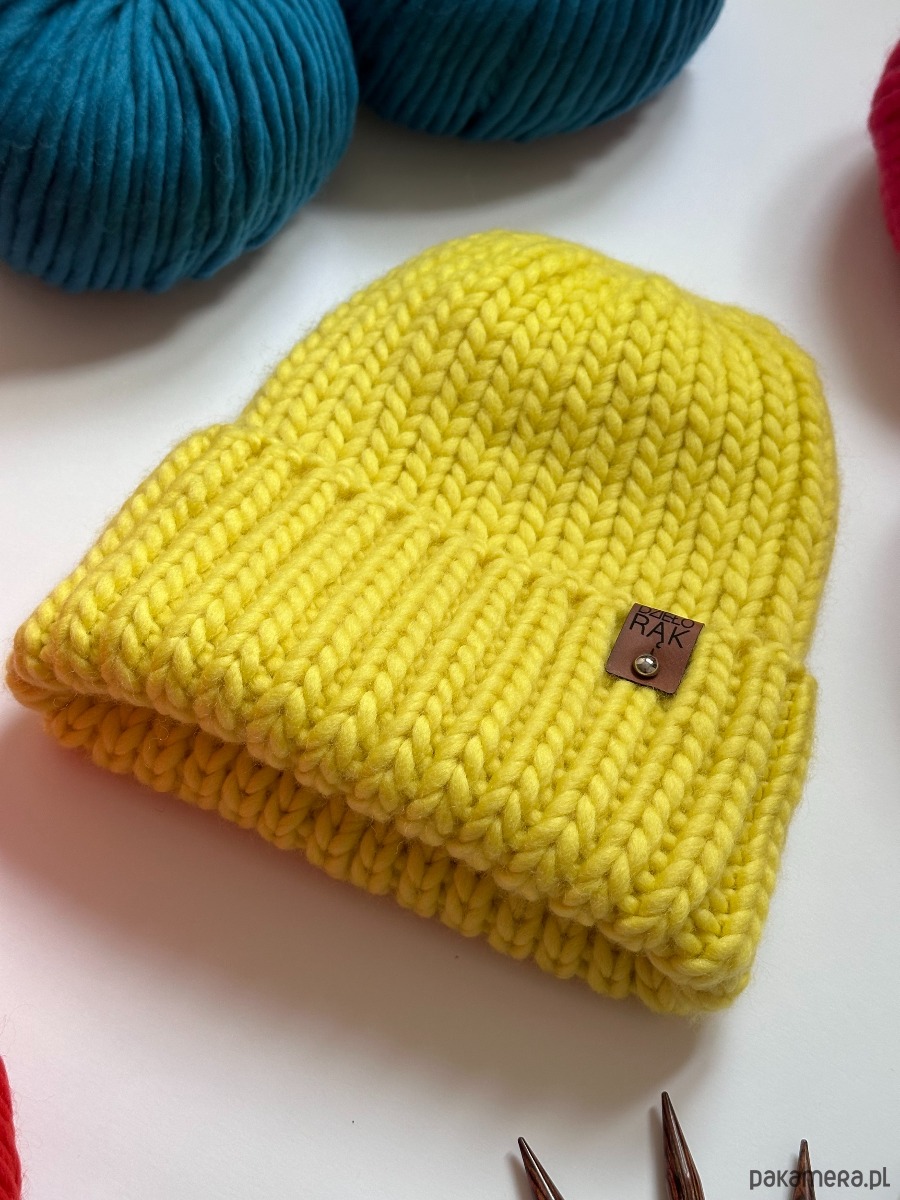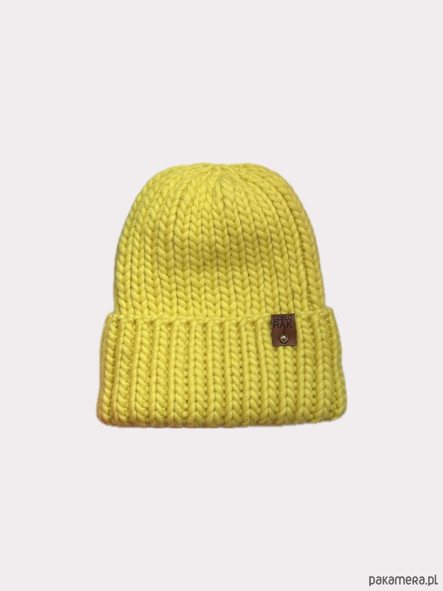 Zimowa czapka handmade w soczystym, cytrynowym żółtym.