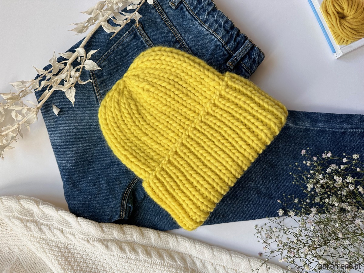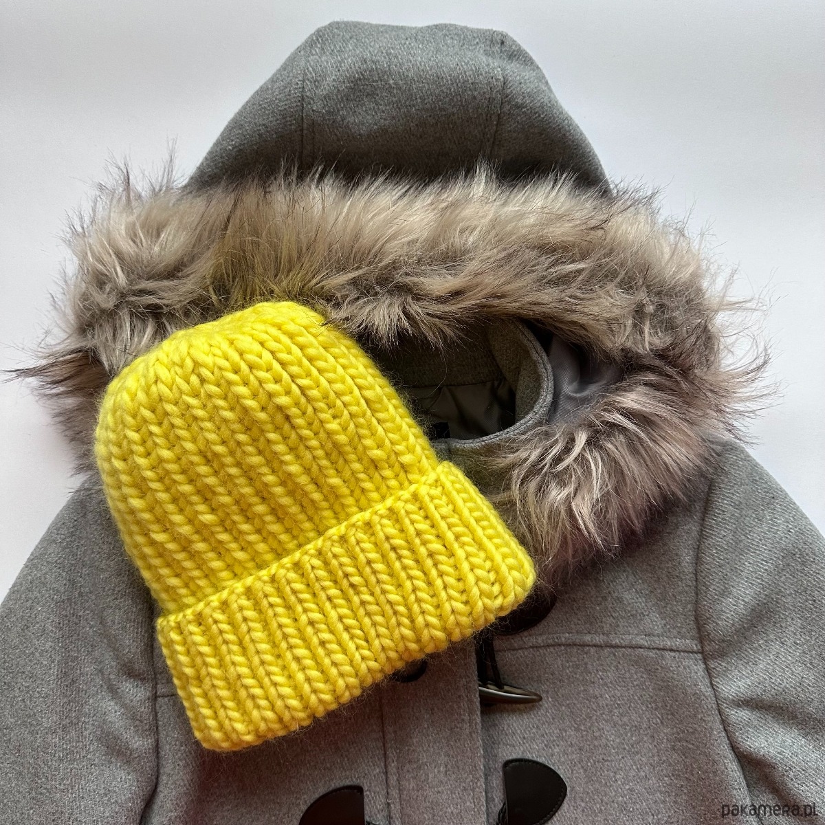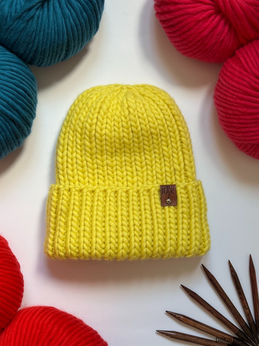 Zimowa czapka handmade w soczystym, cytrynowym żółtym.