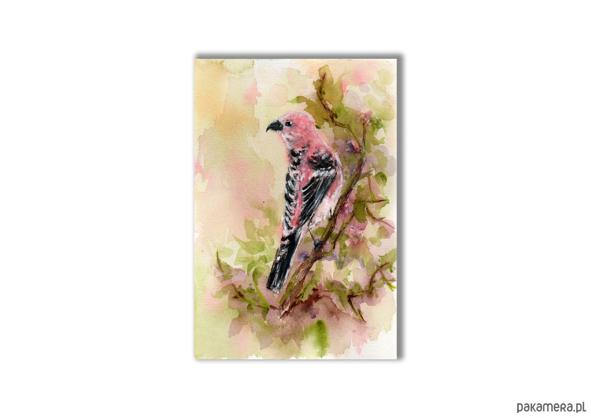 Grubodziób sosnowy. Zięba. Akwarela ręcznie malowana