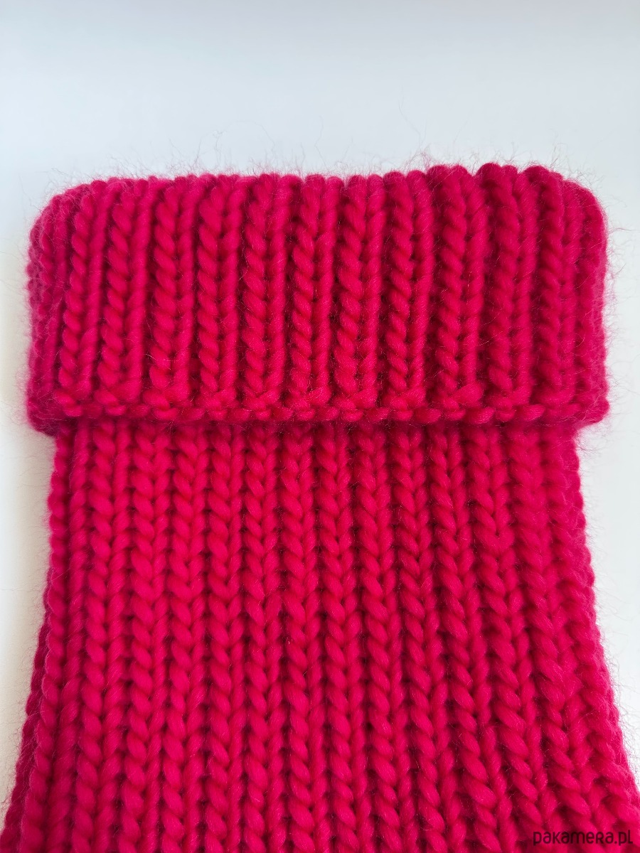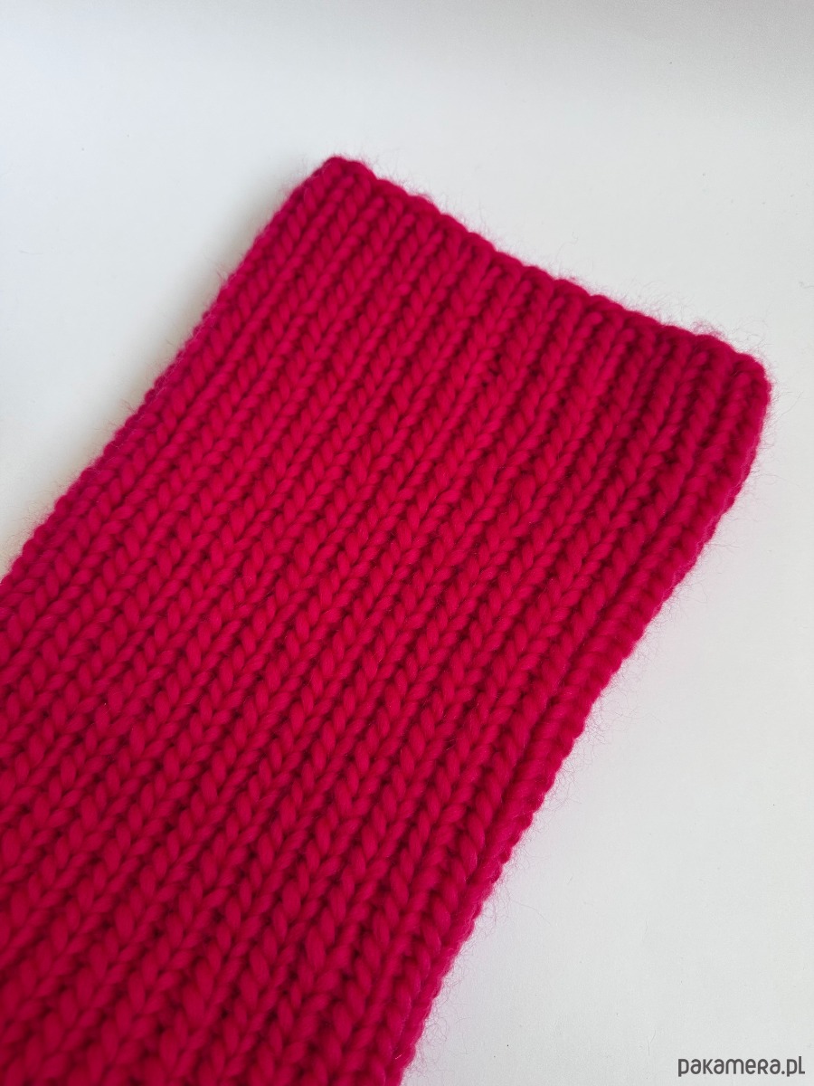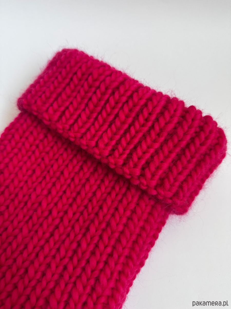 Komin może być kompletem z grubą czapką oversize z bardzo szerokim wywinięciem oraz mitenkami (dostępne w osobnych ogłoszeniach).