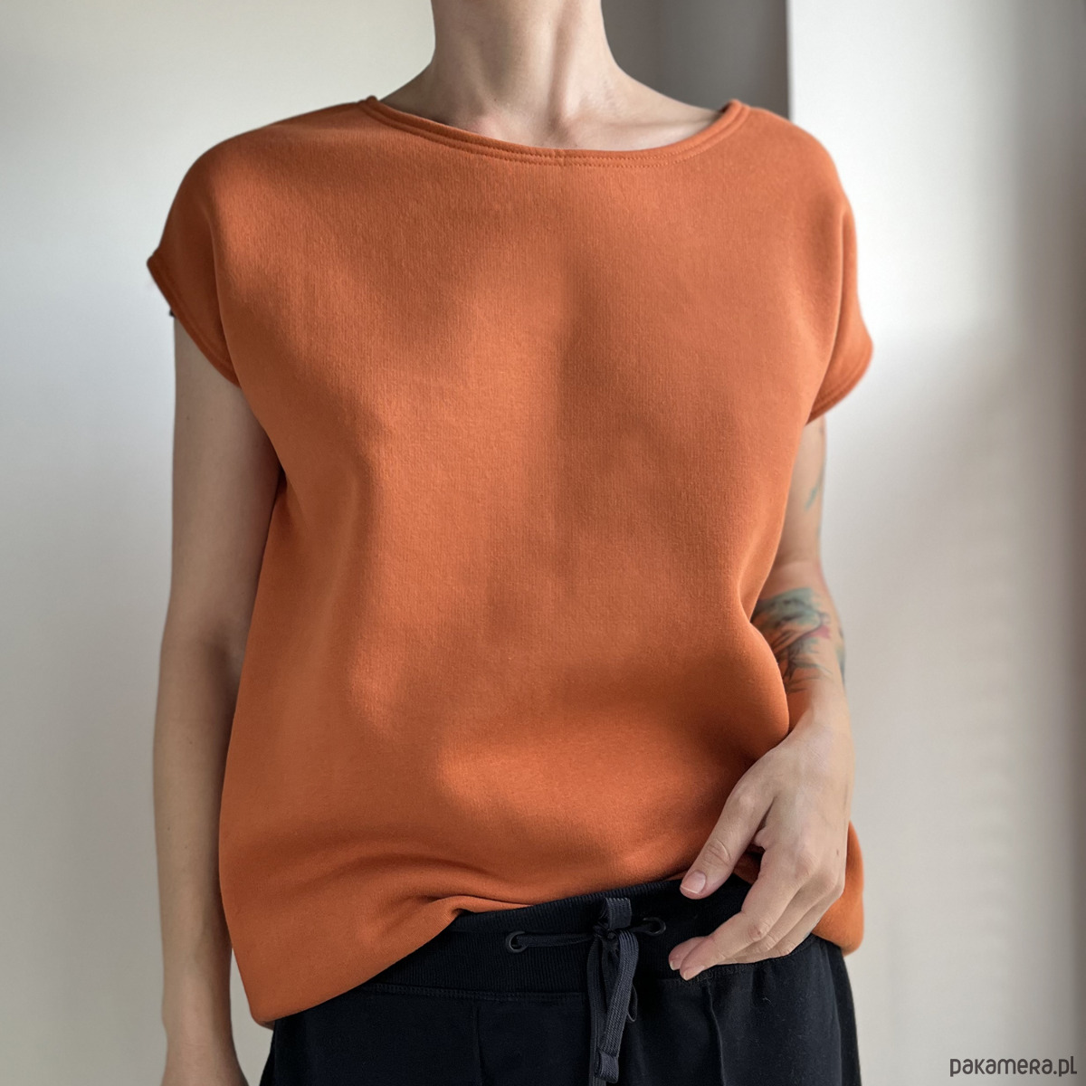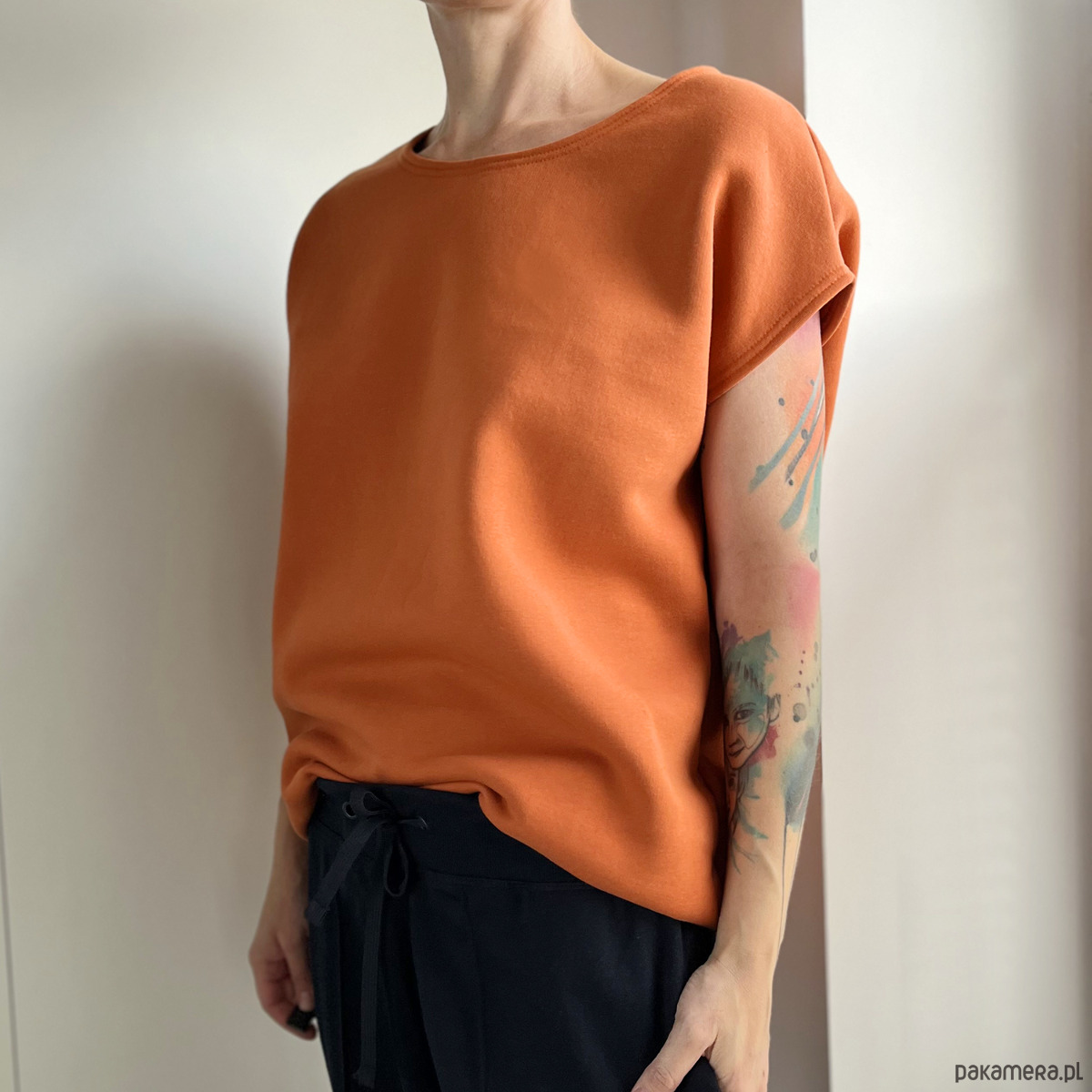 Bluza jest w stylu oversize – idealna, by poczuć się swobodnie. Wykonana z mieszanki 90% bawełny i 10% poliestru, gwarantuje ciepło w chłodniejsze dni, a pomarańczoworudy odcień dodaje jej wyjątkowości.