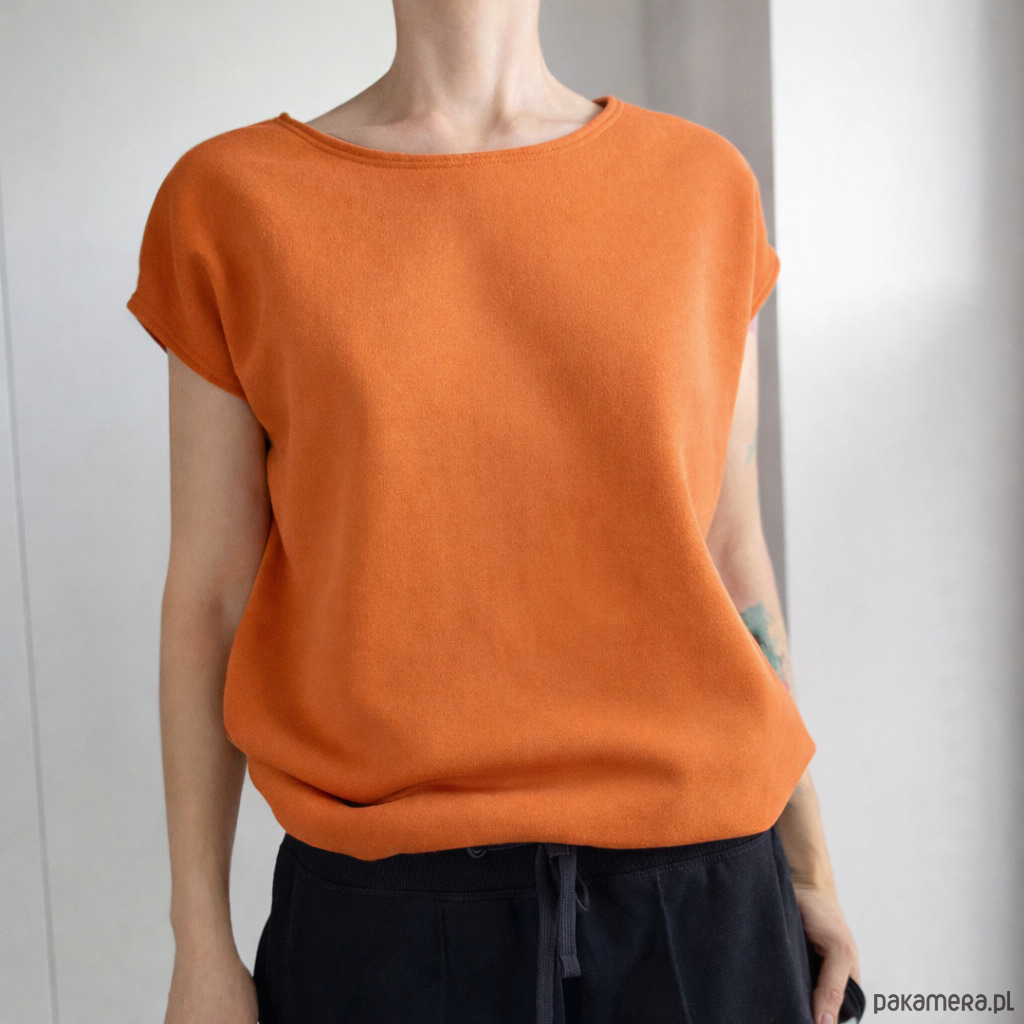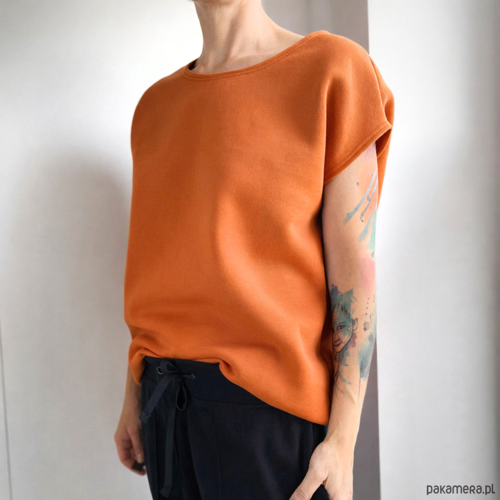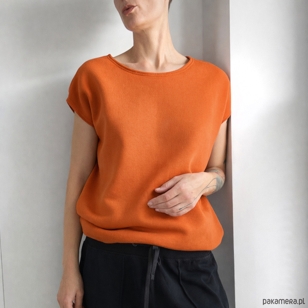 Oryginalna ruda jak rydz bluza - świetne połączenie koloru z minimalistycznym, architektonicznym wręcz, krojem.