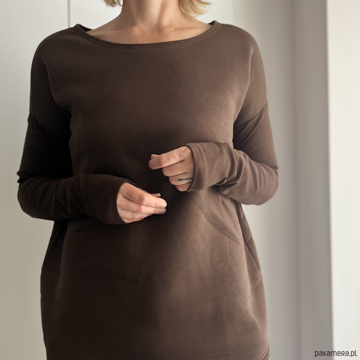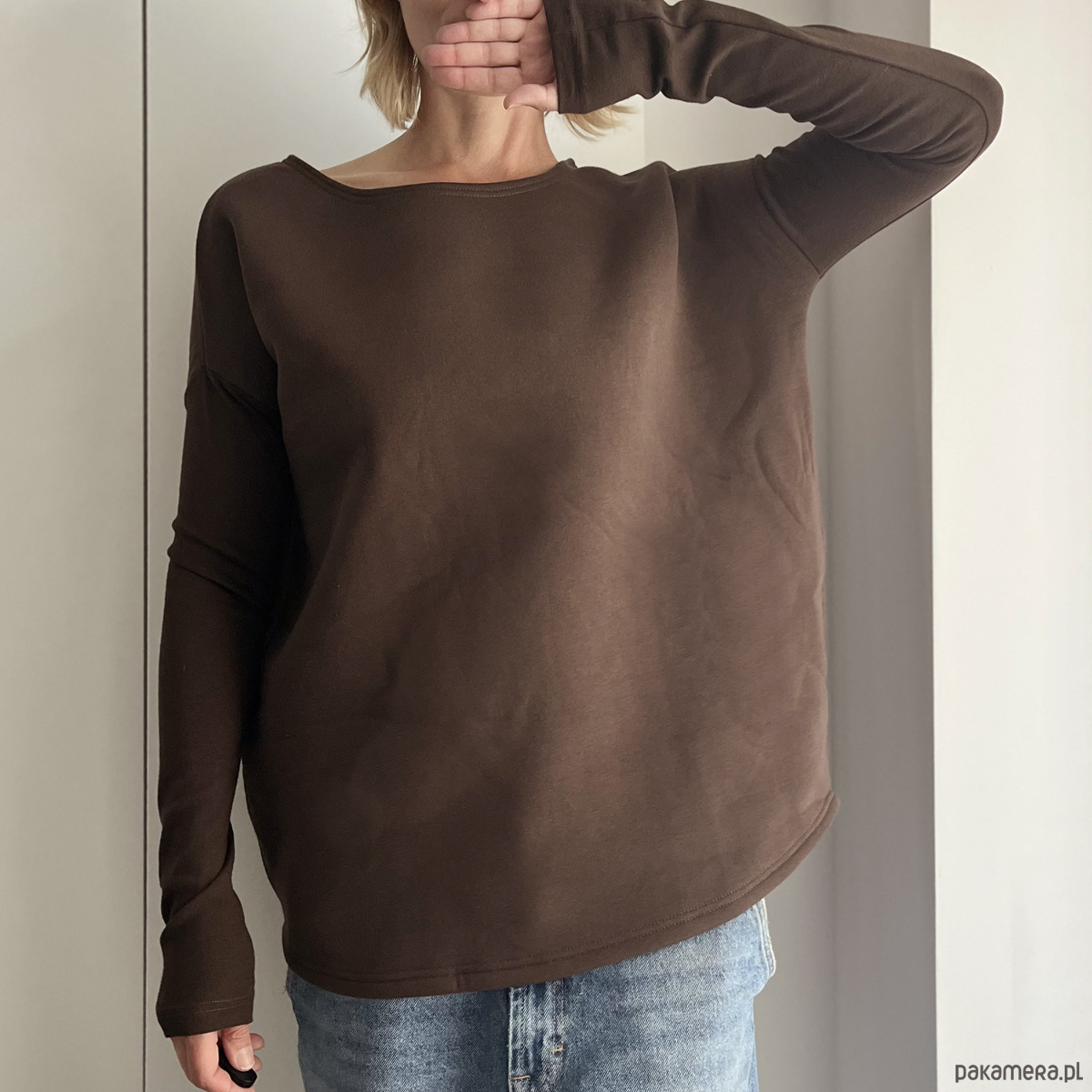 Brązowa bluza z grubej dresówki z misiem od spodu – ciepła, miękka i taka, do której chce się wracać.