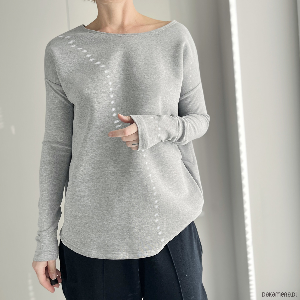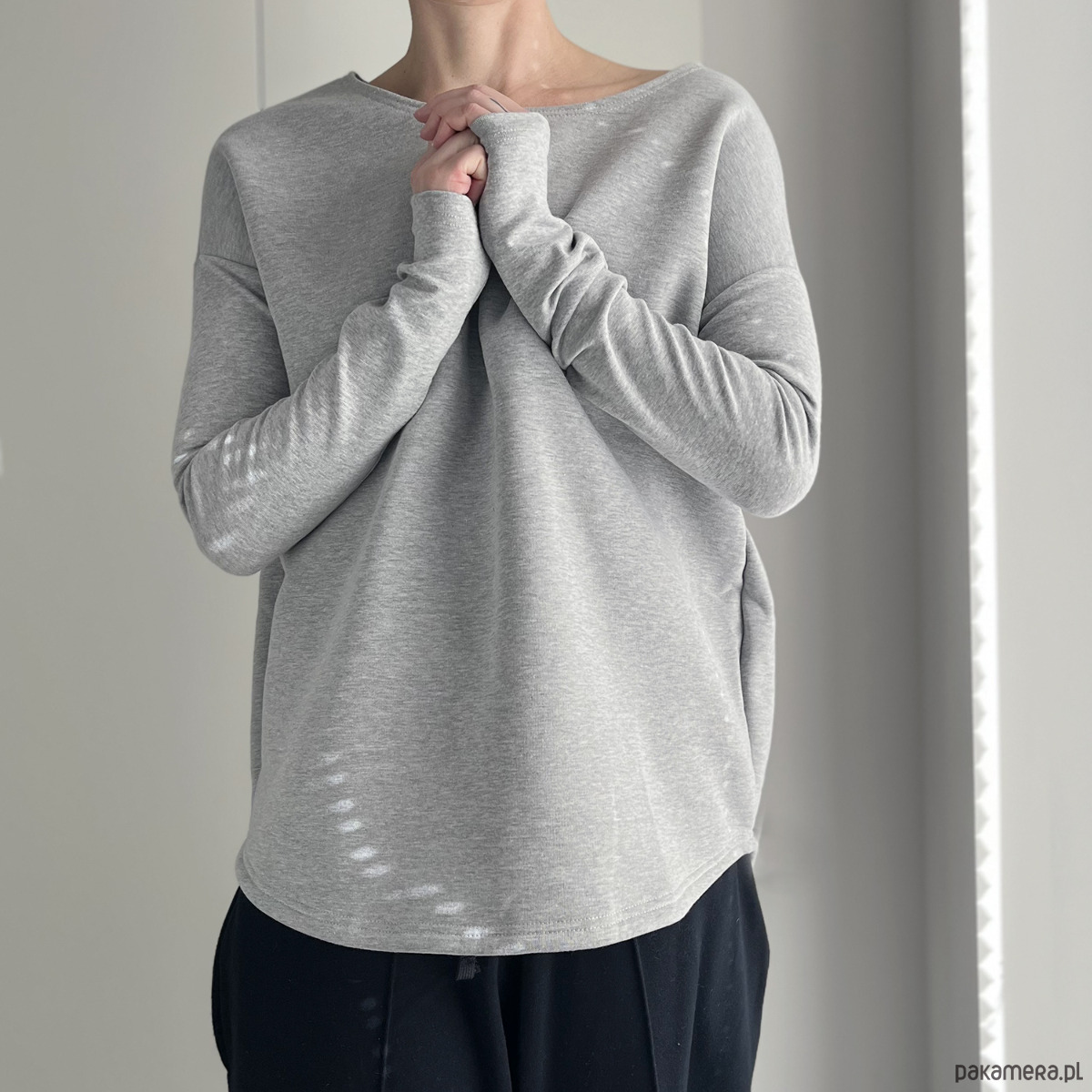 Szara bluza z dłuuugimi rękawami miękko otulającymi nadgarstki. Kochamy ten styl. Jest idealny na zimną połowę roku :)