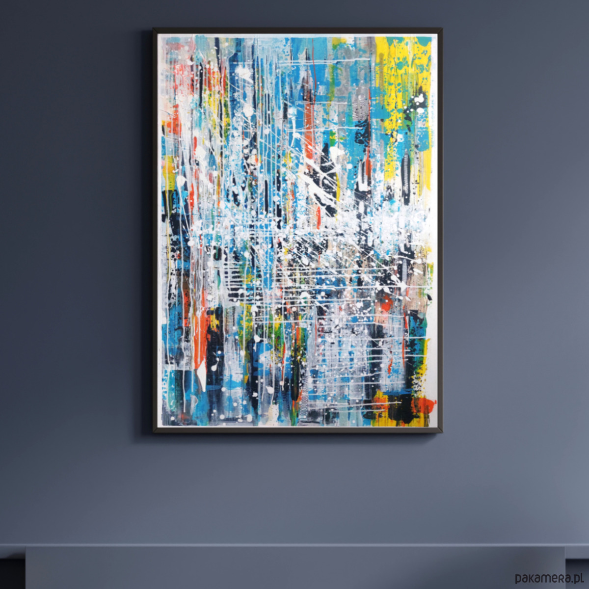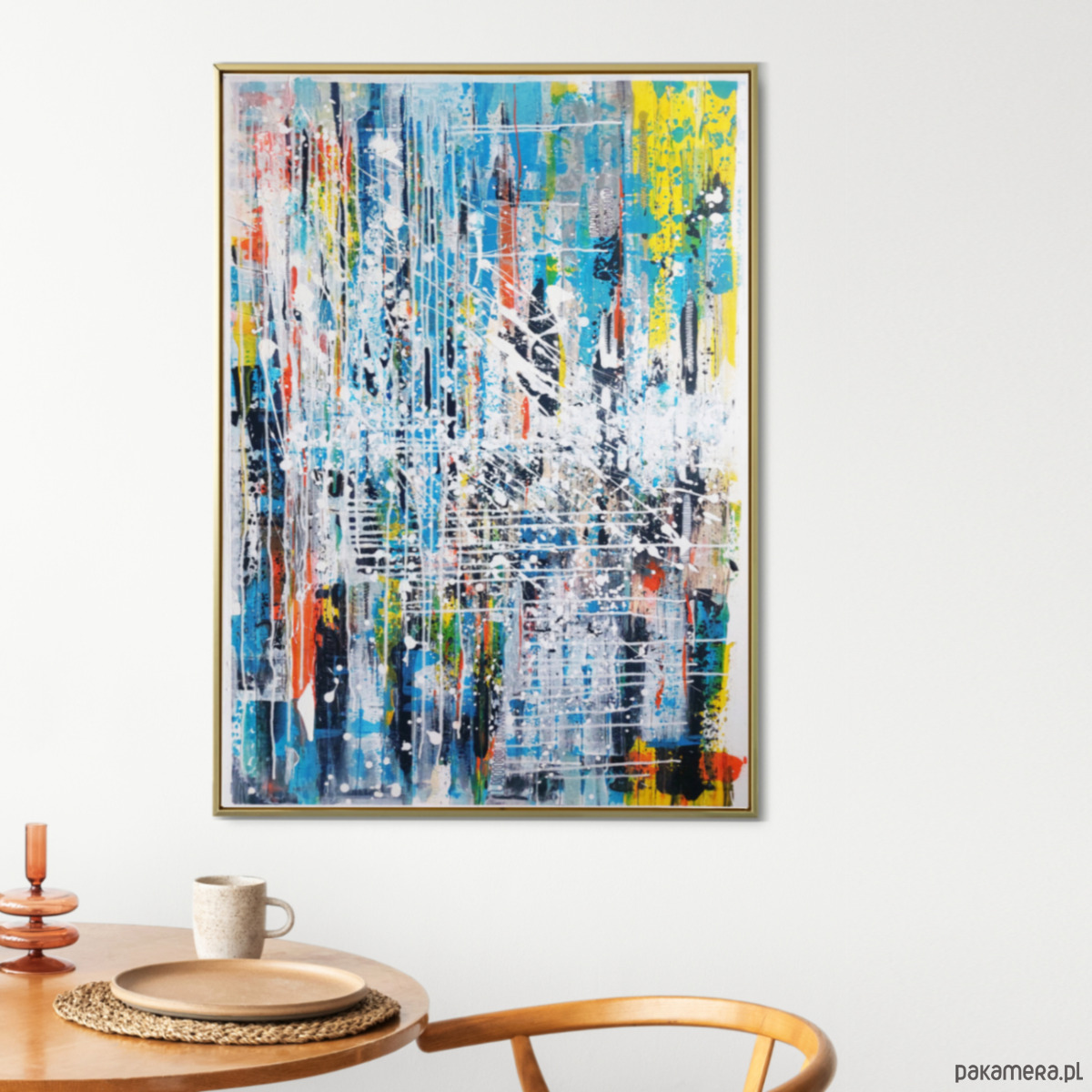GRUNGE to duży obraz abstrakcyjny pełen detalu, warstw i ruchu. Utrzymany w wibrujących barwach, wprowadzi do wnętrz dawkę energii. Kolorystyka i przetarcia sprawiają, że świetnie będzie wyglądał w szarościach, na drewnie, bieli, na betonach czy w salonie. Podkreśli też klimat w pubie, gabinecie czy pokoju nastolatka. Możesz od razu powiesić go w wybranym miejscu, bo nie wymaga ramy :)