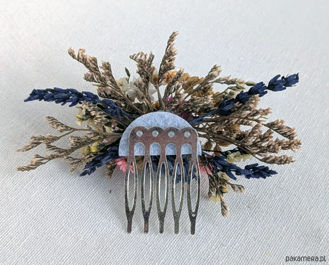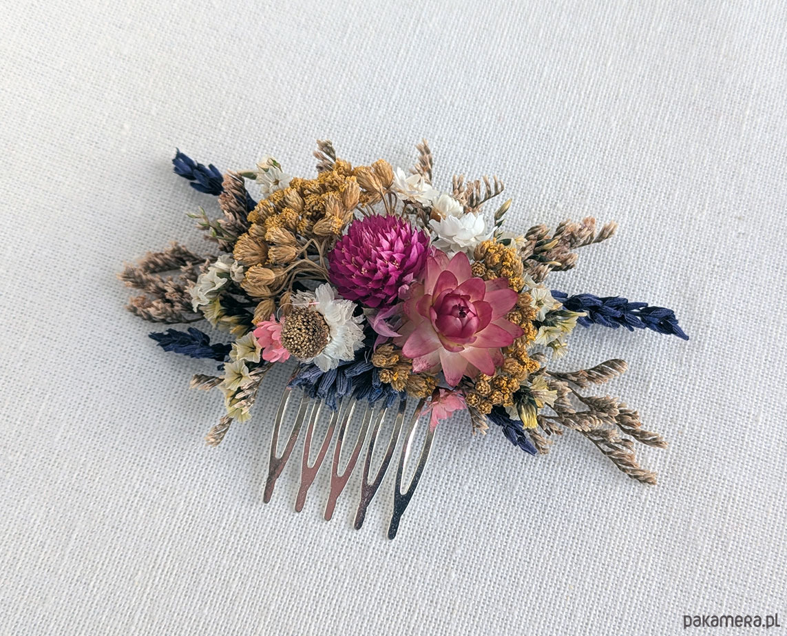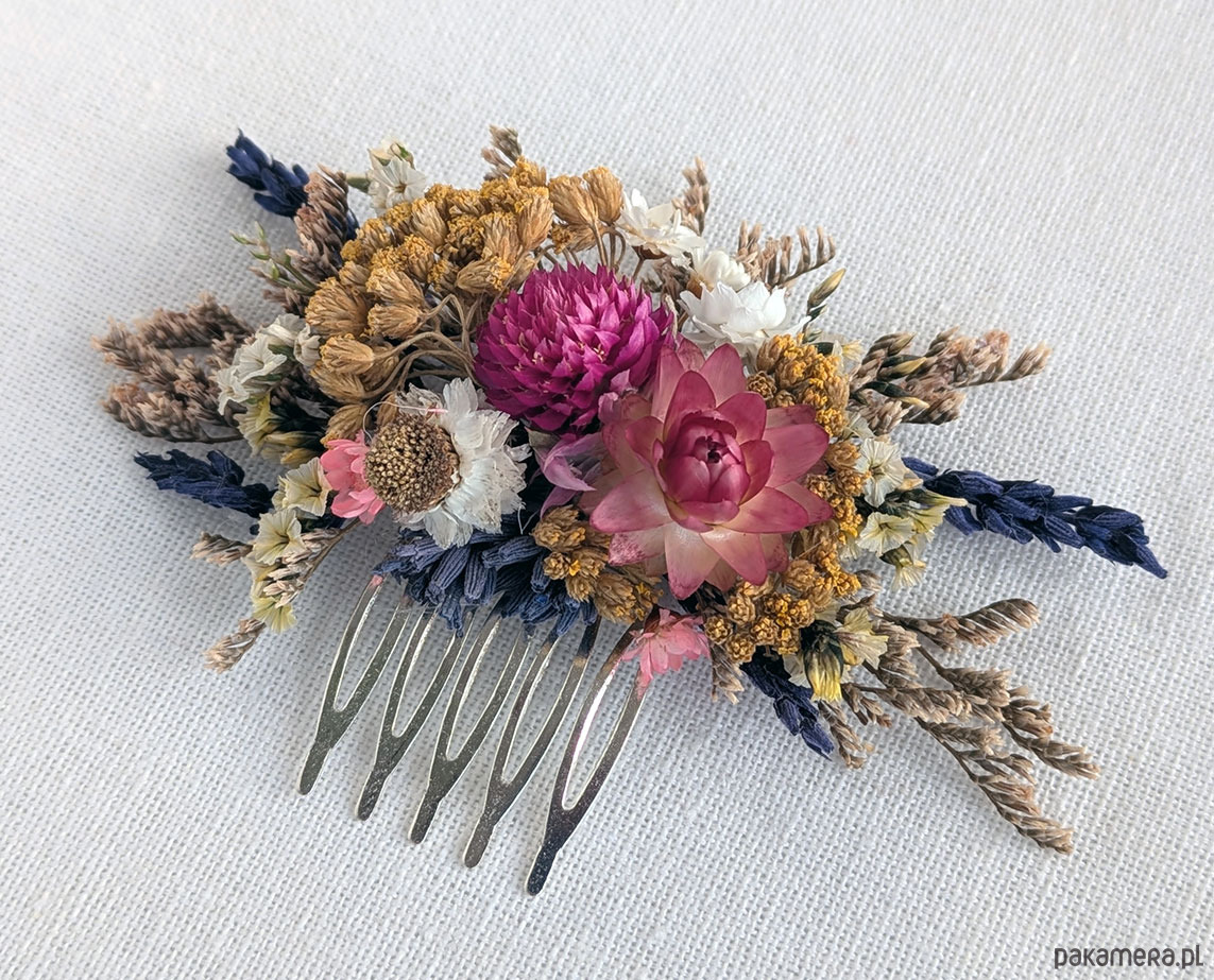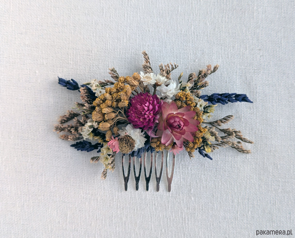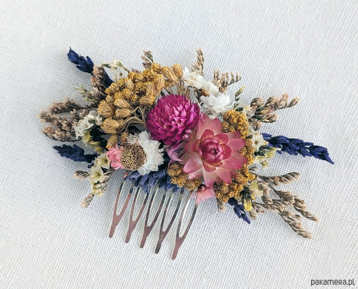 Grzebyk do włosów z naturalnymi kwiatami różowa łąka