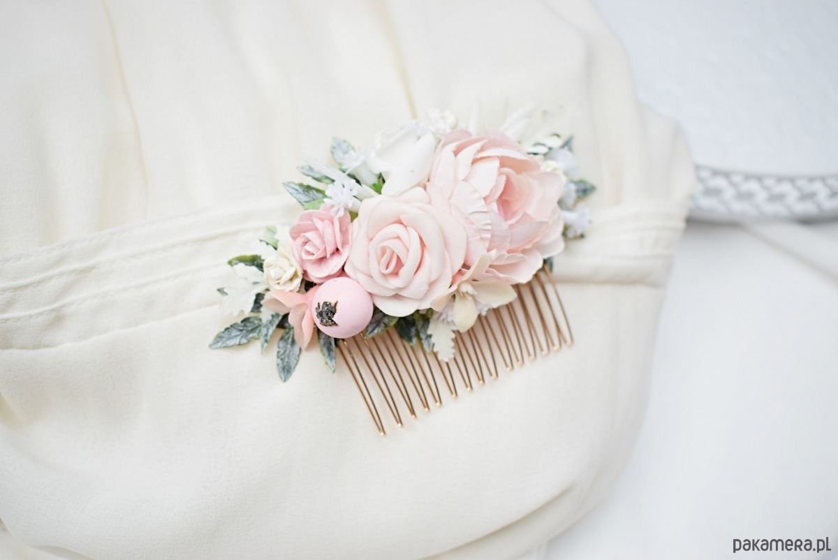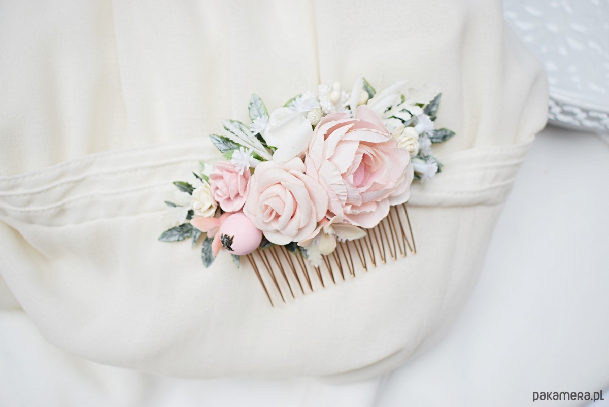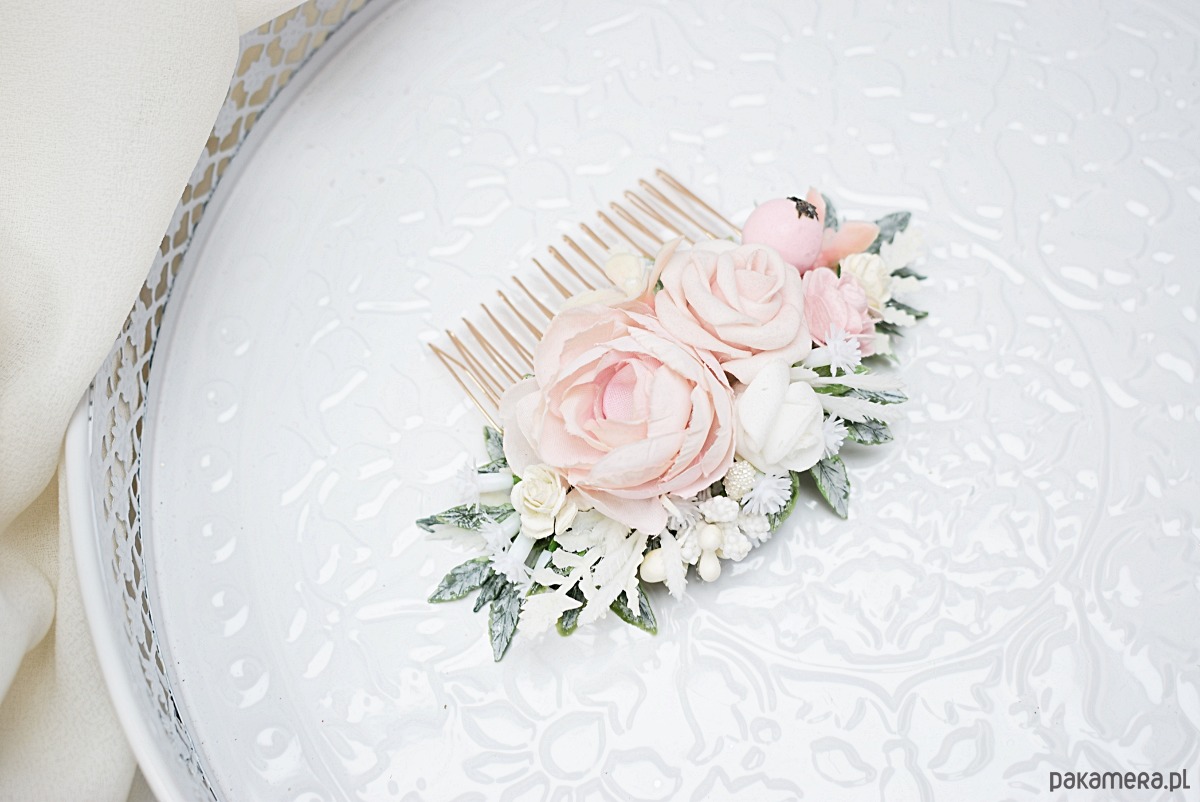 Kwiaty ręcznie wykonane, możliwość wykonania grzebyka w innych kolorach.