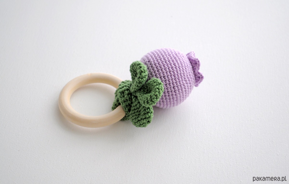 Ta urocza grzechocząca jagoda może posłużyć jako oryginalny prezent dla maluszka i jego rodziców, ozdoba na babyshower lub dekoracja pokoju dziecięcego.