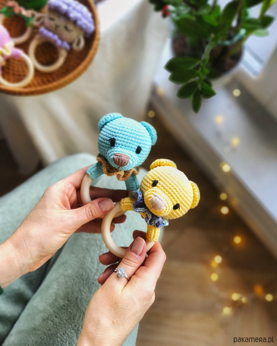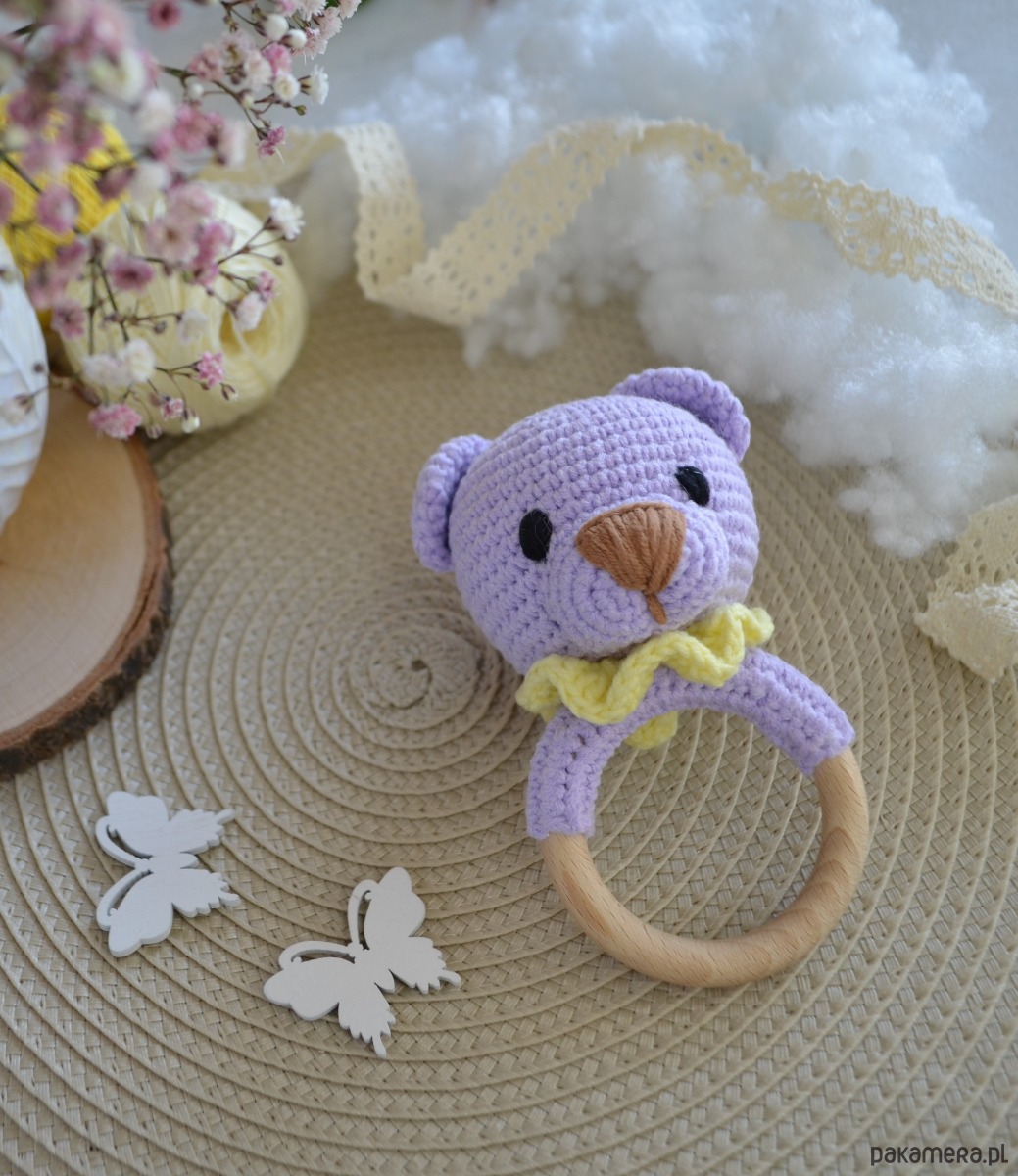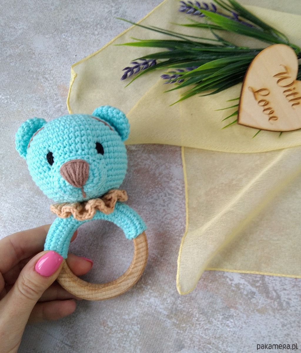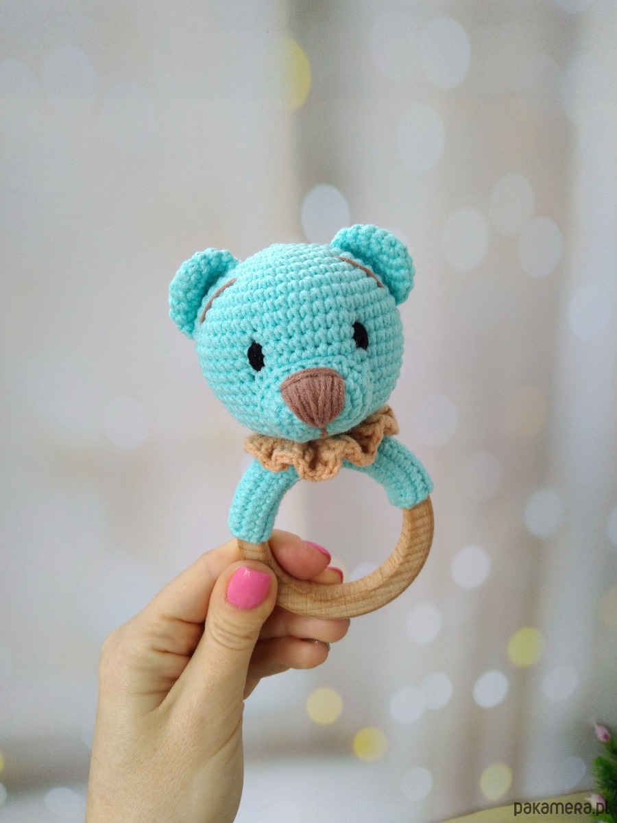 Szydełkowana grzechotka miś to idealna pierwsza zabawka dla Twojego maluszka!