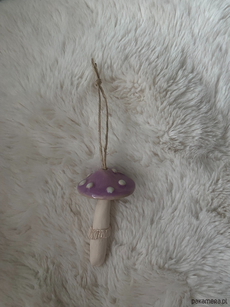 Zawieszka grzybek ceramiczny dwuczęściowy łączony sznurkiem.