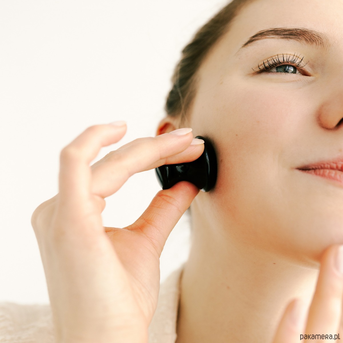 Poznaj odprężający rytuał domowego SPA z wykorzystaniem grzybka do masażu twarzy i ciała z czarnego obsydianu.