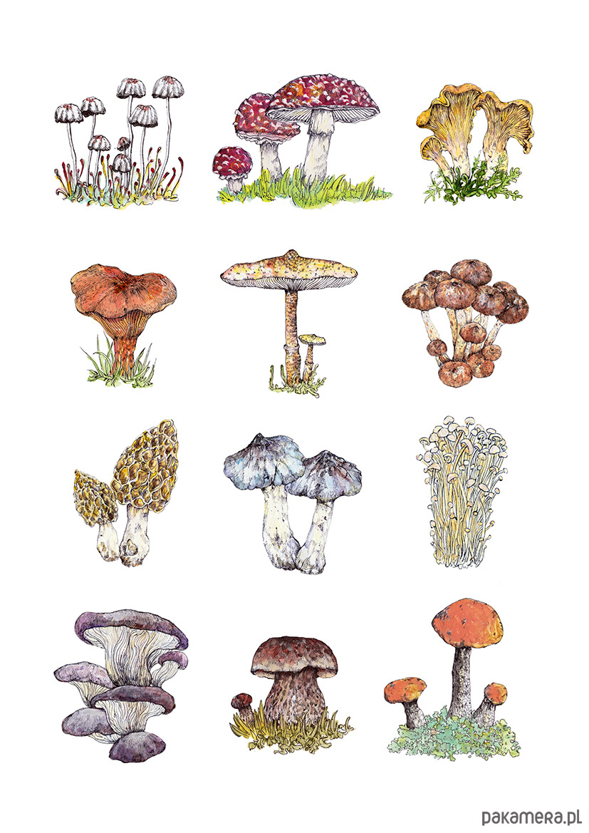 Grafika Grzybki, to wydruk autorskiej ilustracji inspirowanej lasem i jesiennymi spacerami
