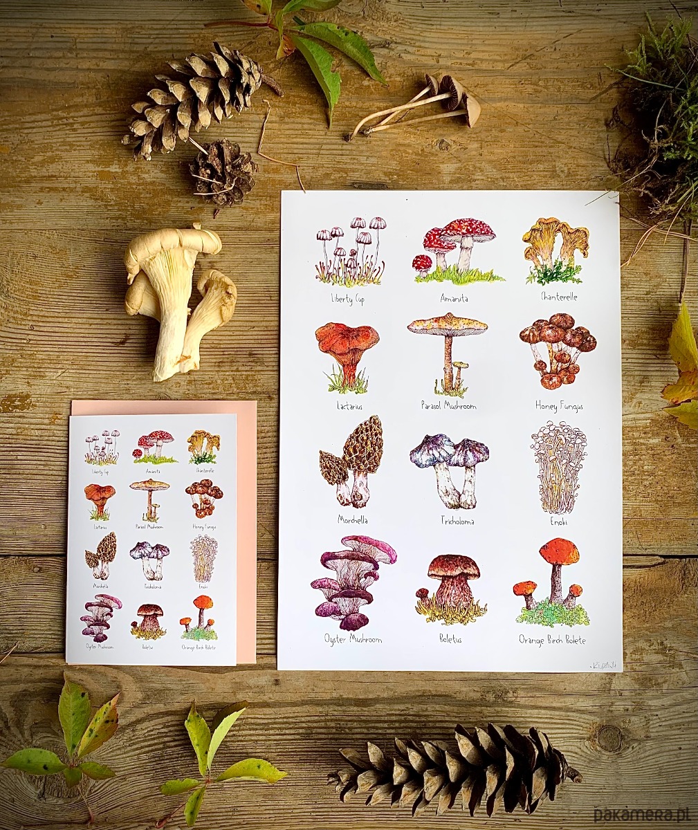 Grzyby- Kartka- Grafika- Ilustracja- Las
