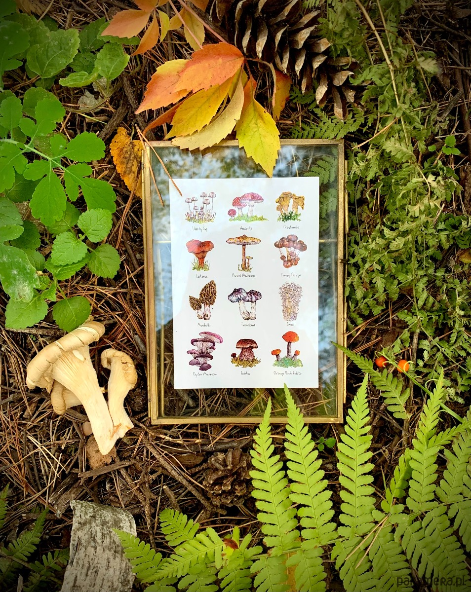 Grzyby, wydruk autorskiej ilustracji inspirowanej światem rodzimej flory oraz estetyką vintage.