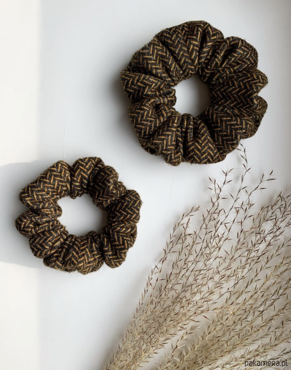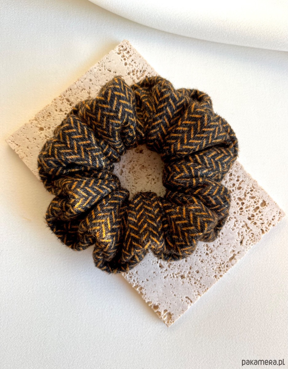 Scrunchie Alexandra to gumka do włosów w jodełkowy wzór. Niezwykle mięsista i mięciutka.