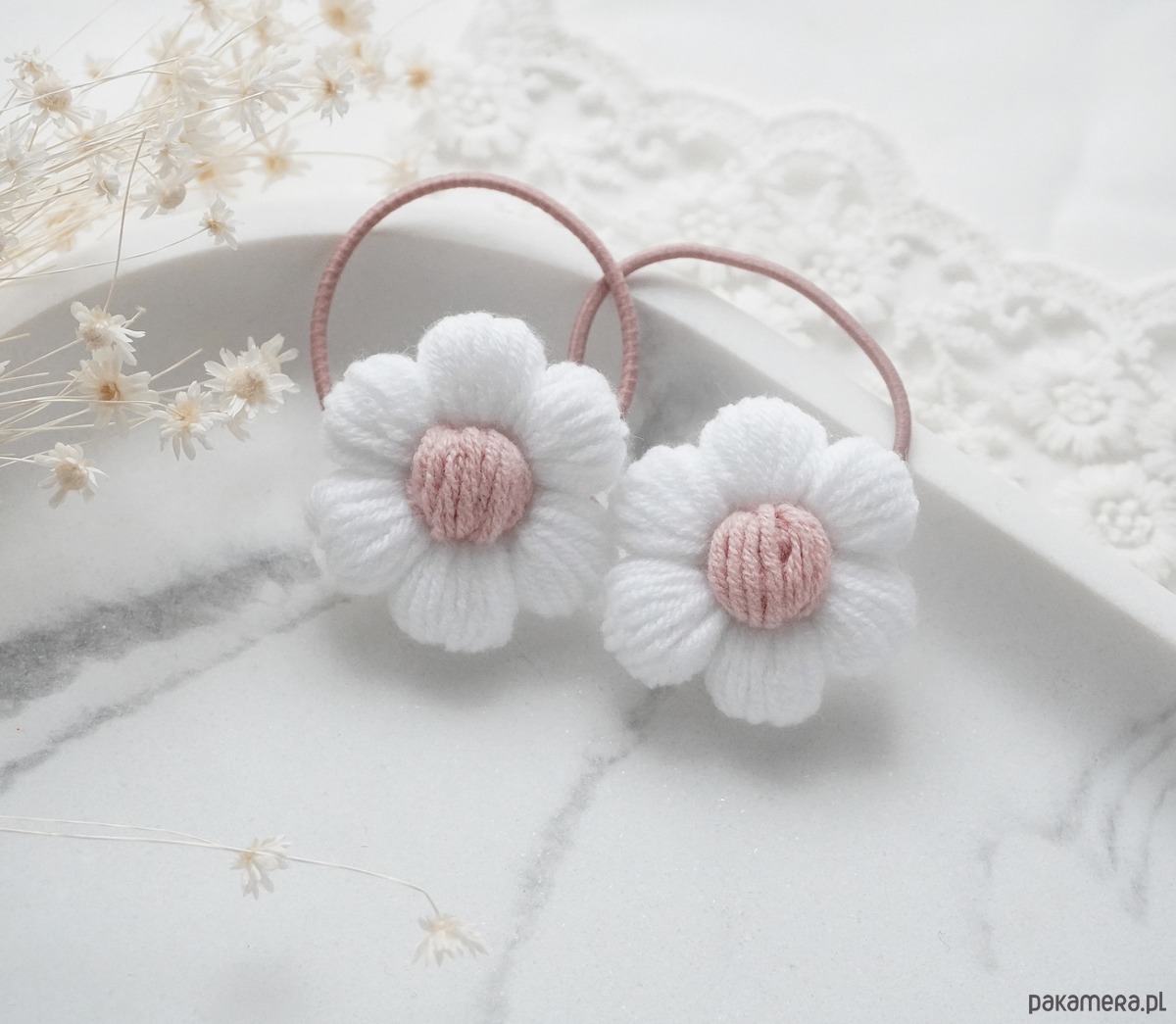 Gumka do włosów dla dziewczynki kwiatek biały LUNA GL09