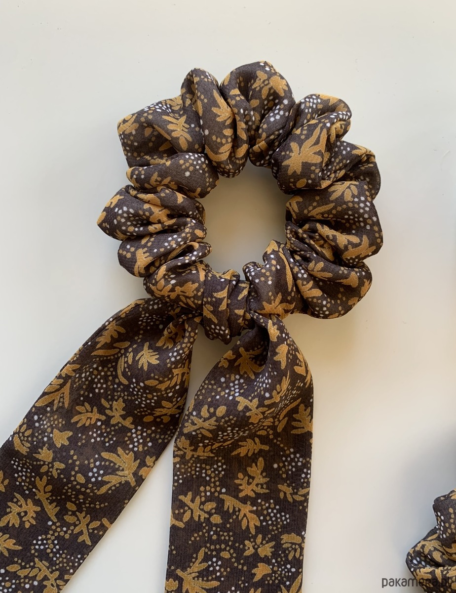 Scrunchie Elle z szarfą to to niezwykle efektowna gumka do włosów dzięki jej wyjątkowej kombinacji kolorystycznej i princie. Subtelna i bardzo dziewczęca.