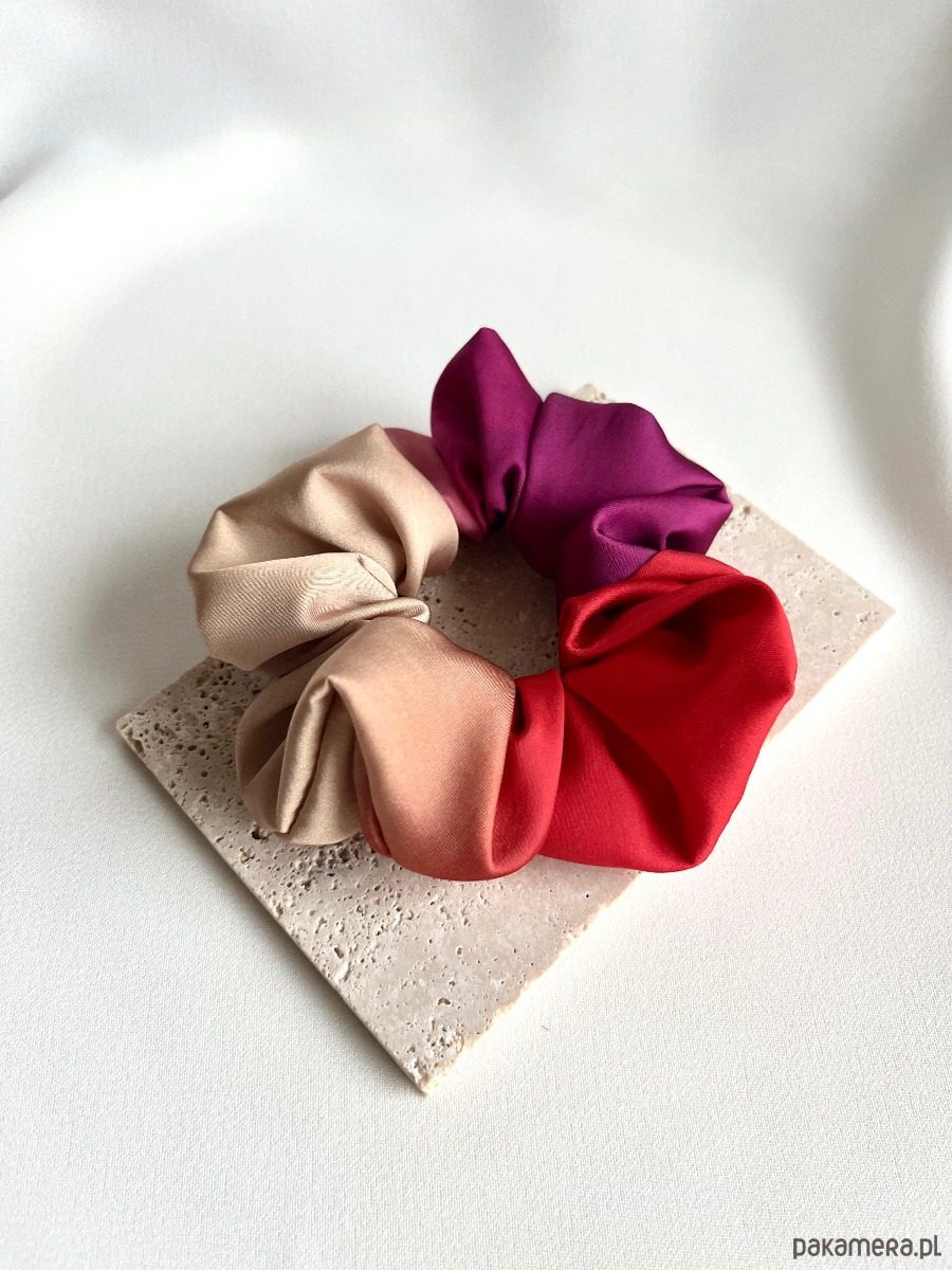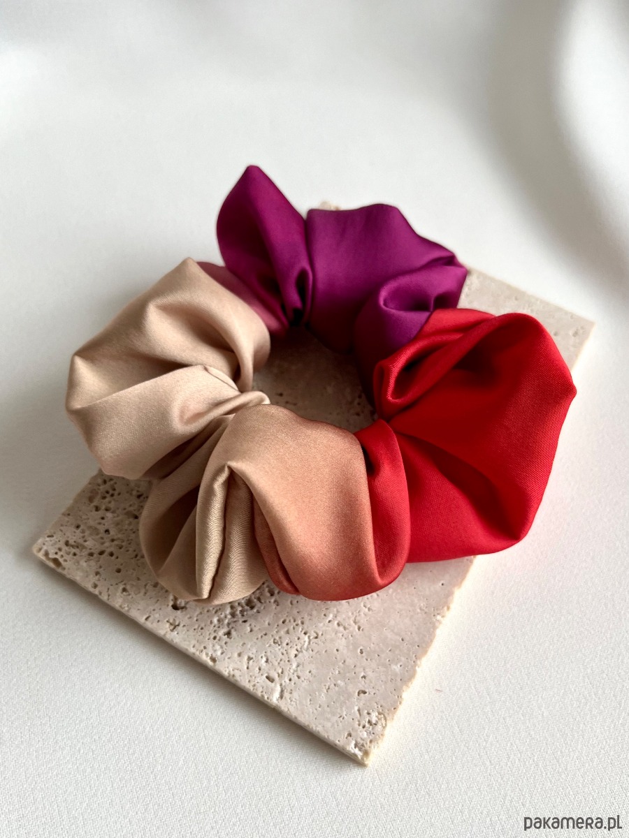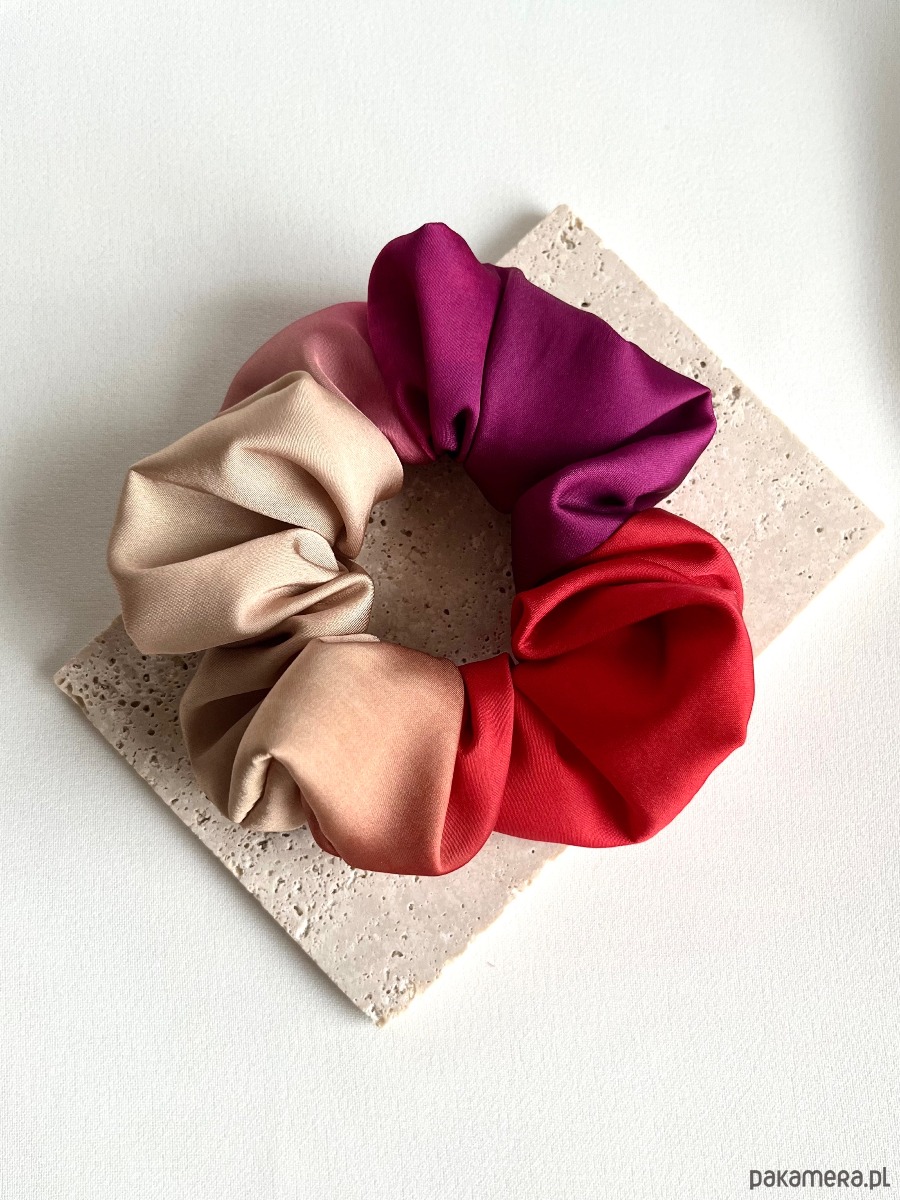 Scrunchie Ombre to niezwykle efektowna, subtelna i bardzo dziewczęca gumka do włosów. Wyróżnia ją wyjątkowy, płynny efekt ombre – kolory płynnie przechodzą jeden w drugi, tworząc harmonijną kompozycję od jasnych, neutralnych odcieni po bardziej nasycone i energetyczne barwy.