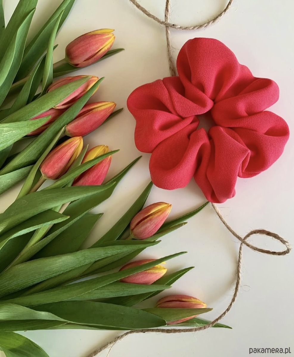 Gumka scrunchie Coral w koralowym odcieniu to wyjątkowa i urocza ozdoba do włosów.