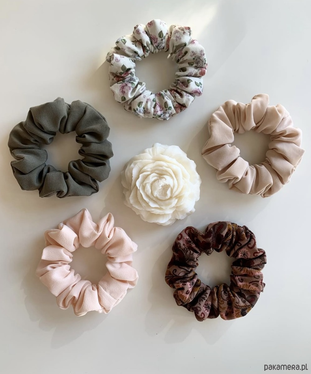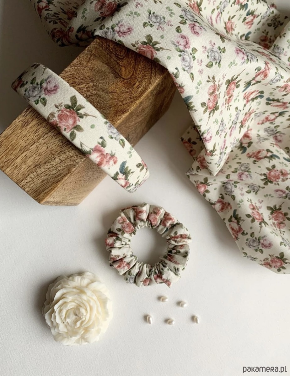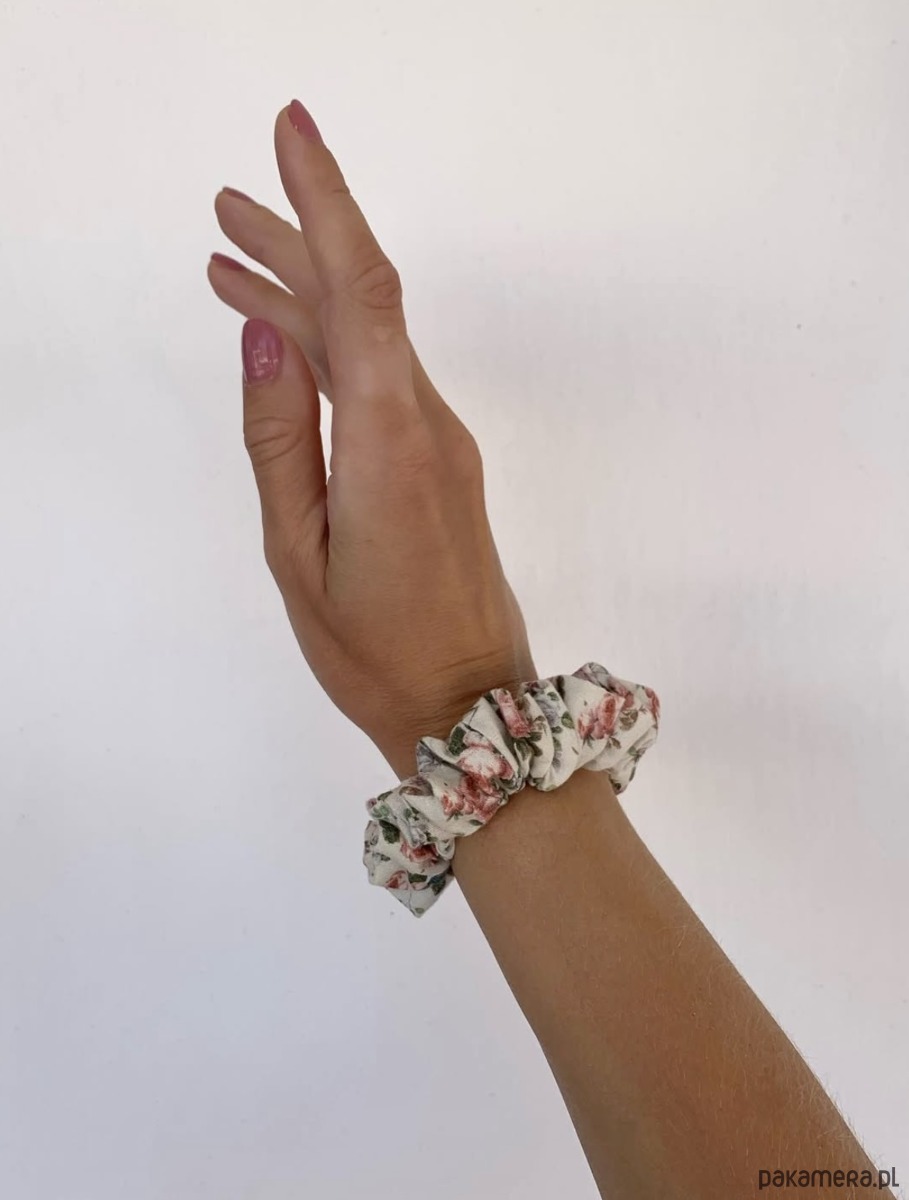 Scrunchie Lizelle to niezwykle efektowna gumka do włosów ze względu na jej wyjątkowy wzór w urocze kwiatuszki i kombinację kolorystyczną.
