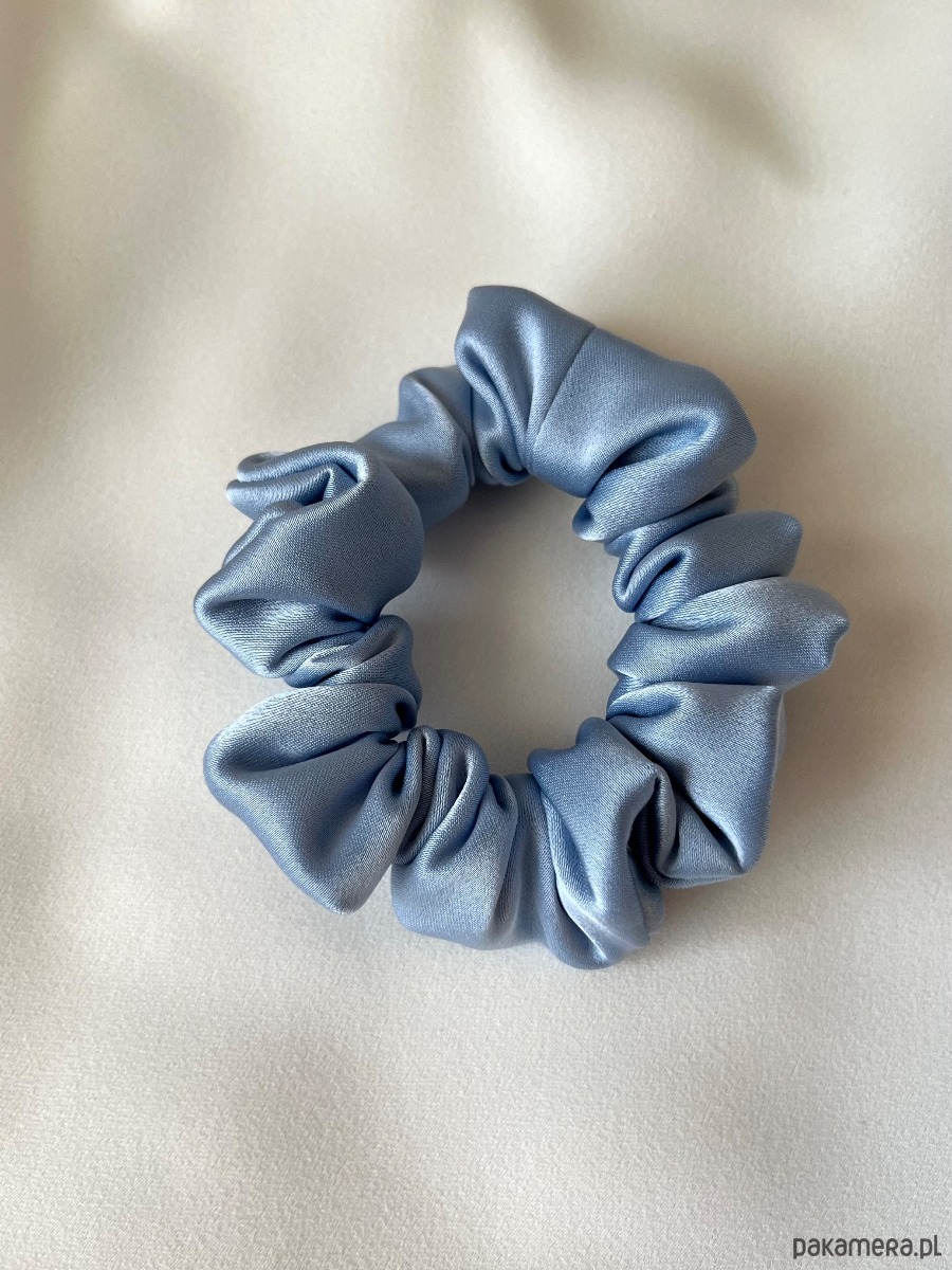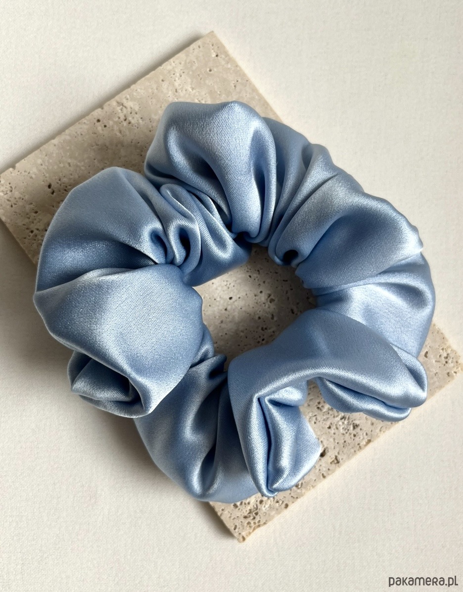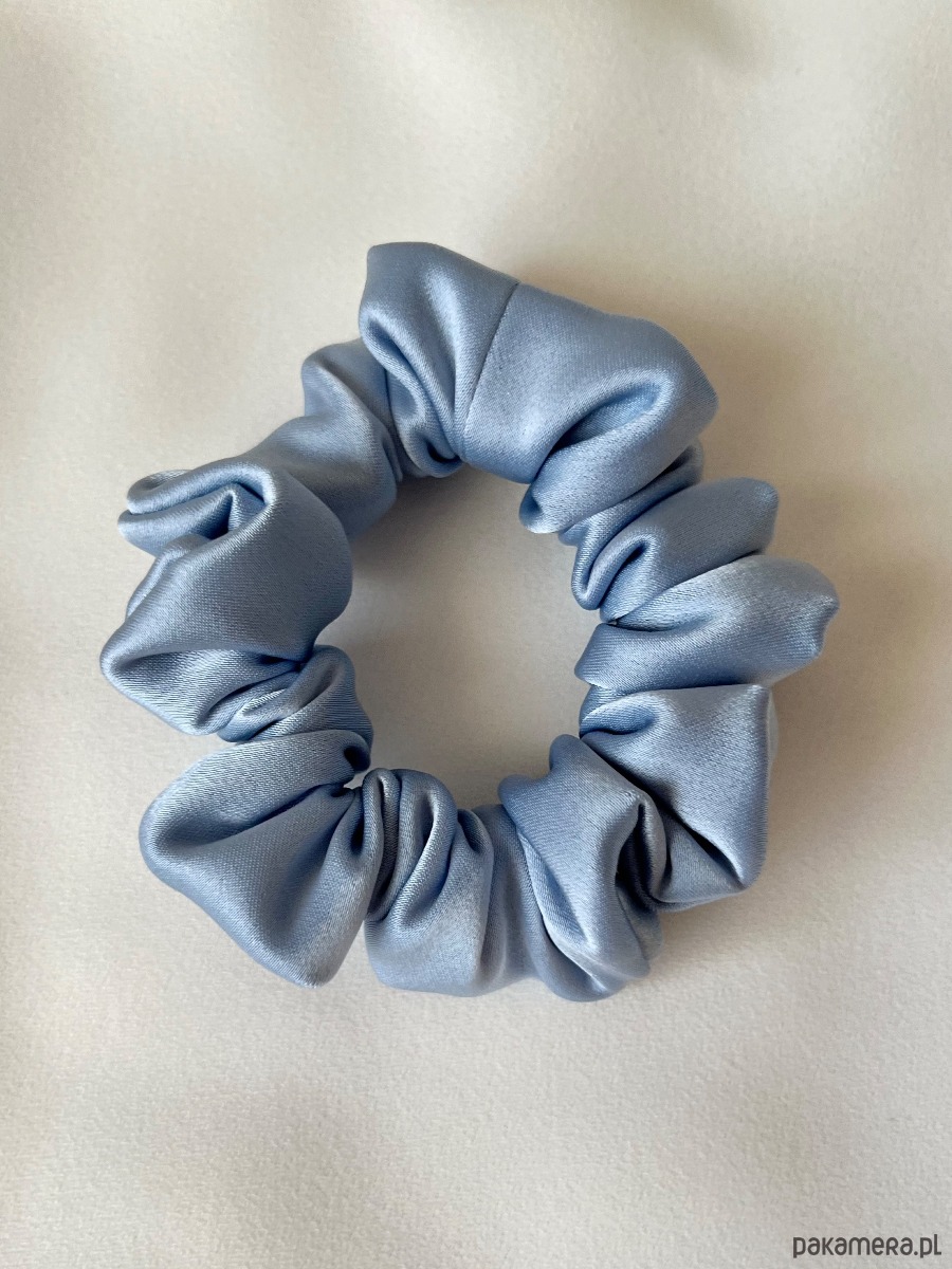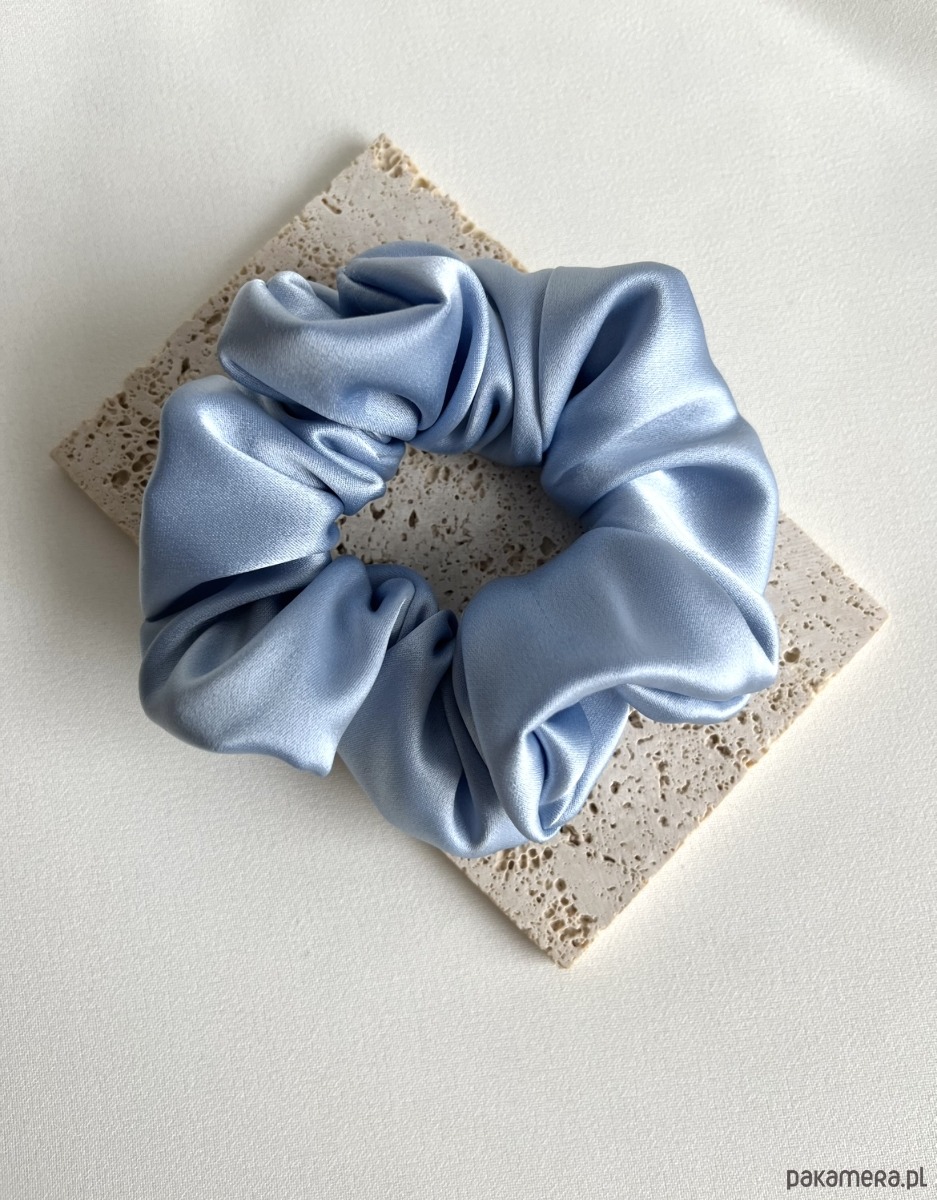 Scrunchie Tamara w pięknym błękitnym kolorze to niezwykle efektowna gumka do włosów.
