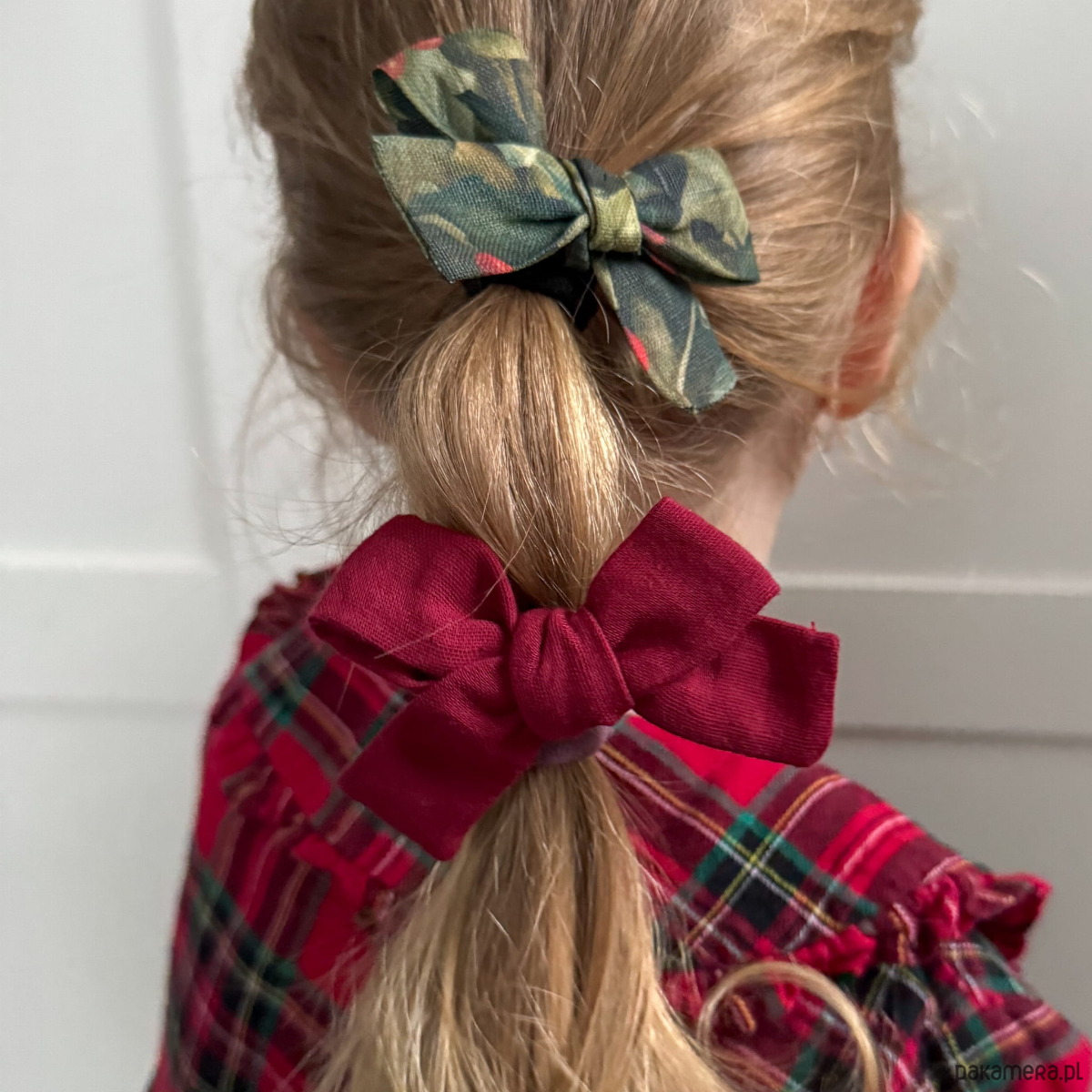 Gumka do włosów z kokardką świąteczna LNIANA jemioła zielona