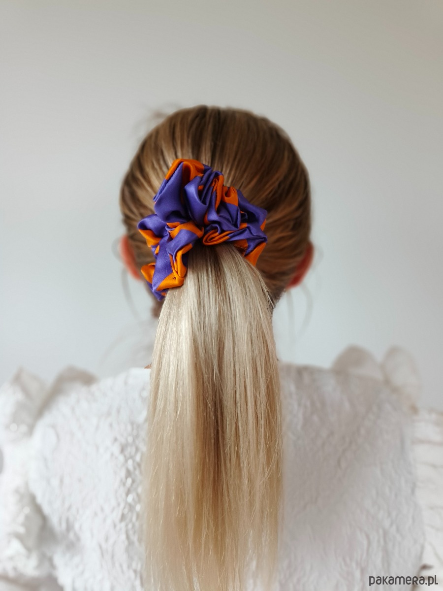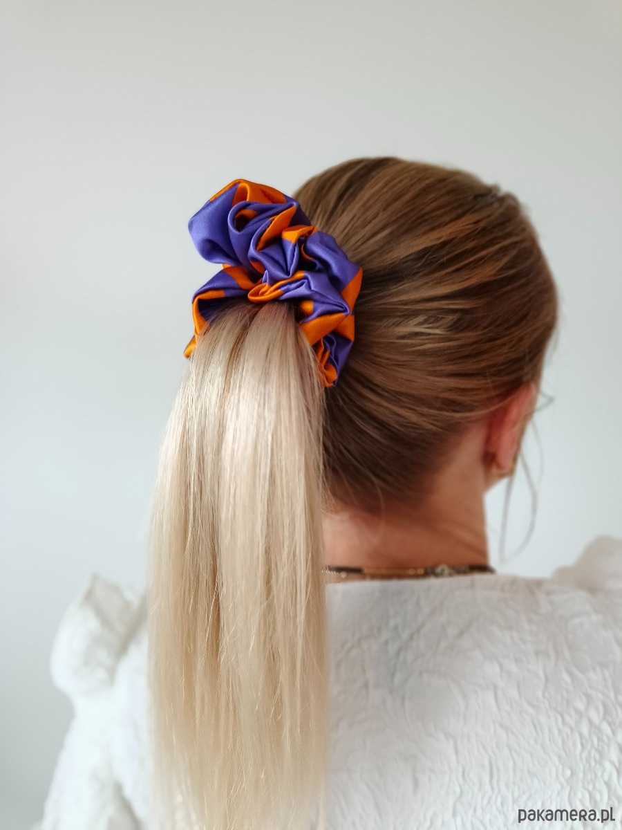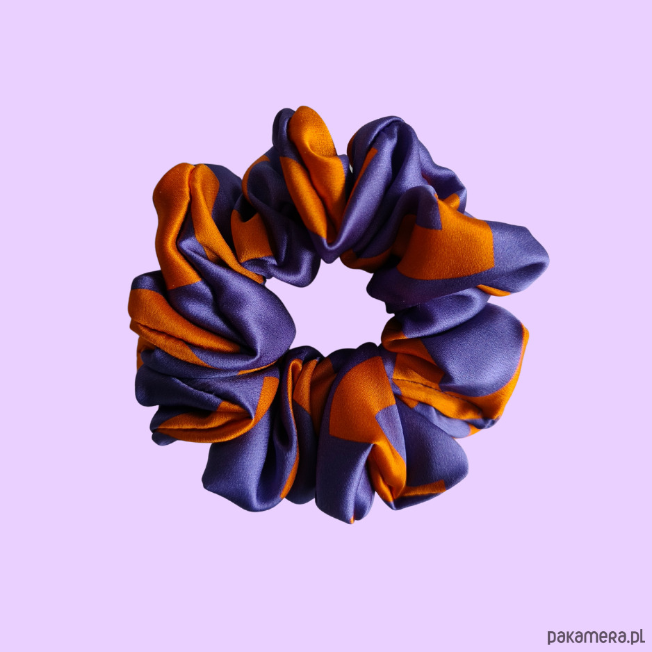 Gumka jedwabna, scrunchie, frotka fioletowa koniczyna MAXI