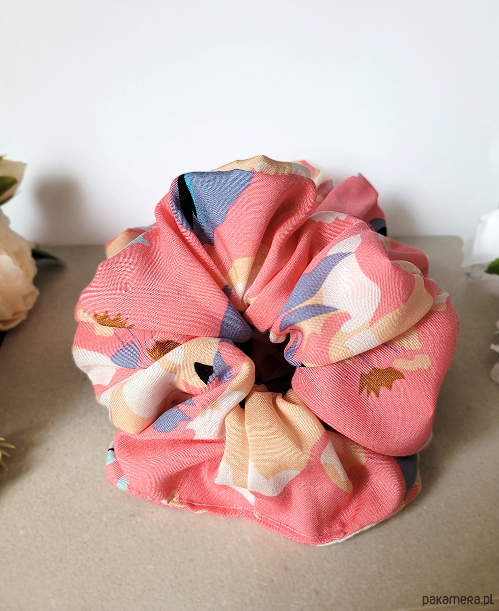 Przepiękna gumka do włosów Maxi Scrunchie w cudownych pastelach w odcieniach różu.