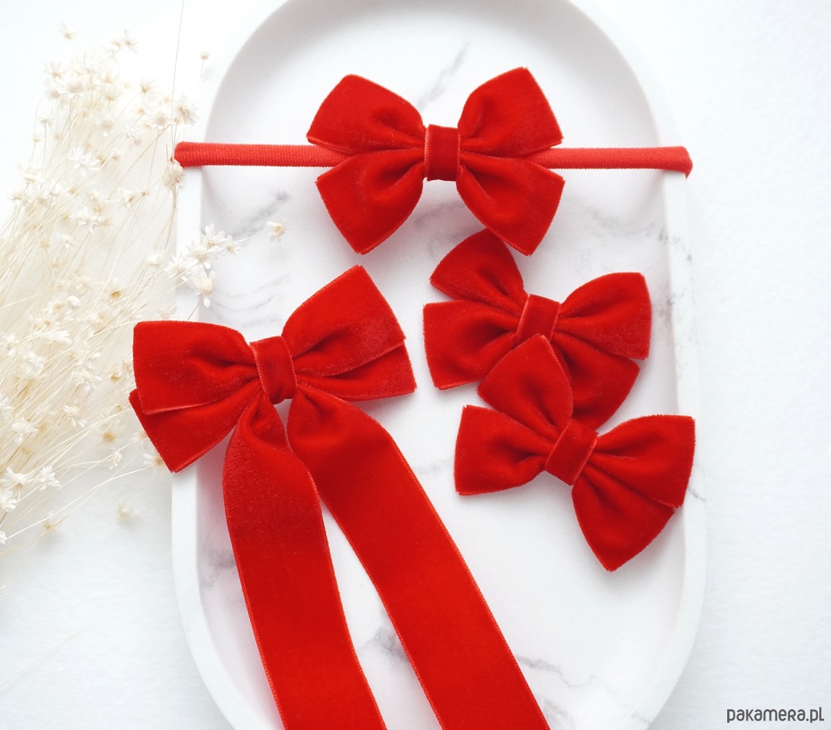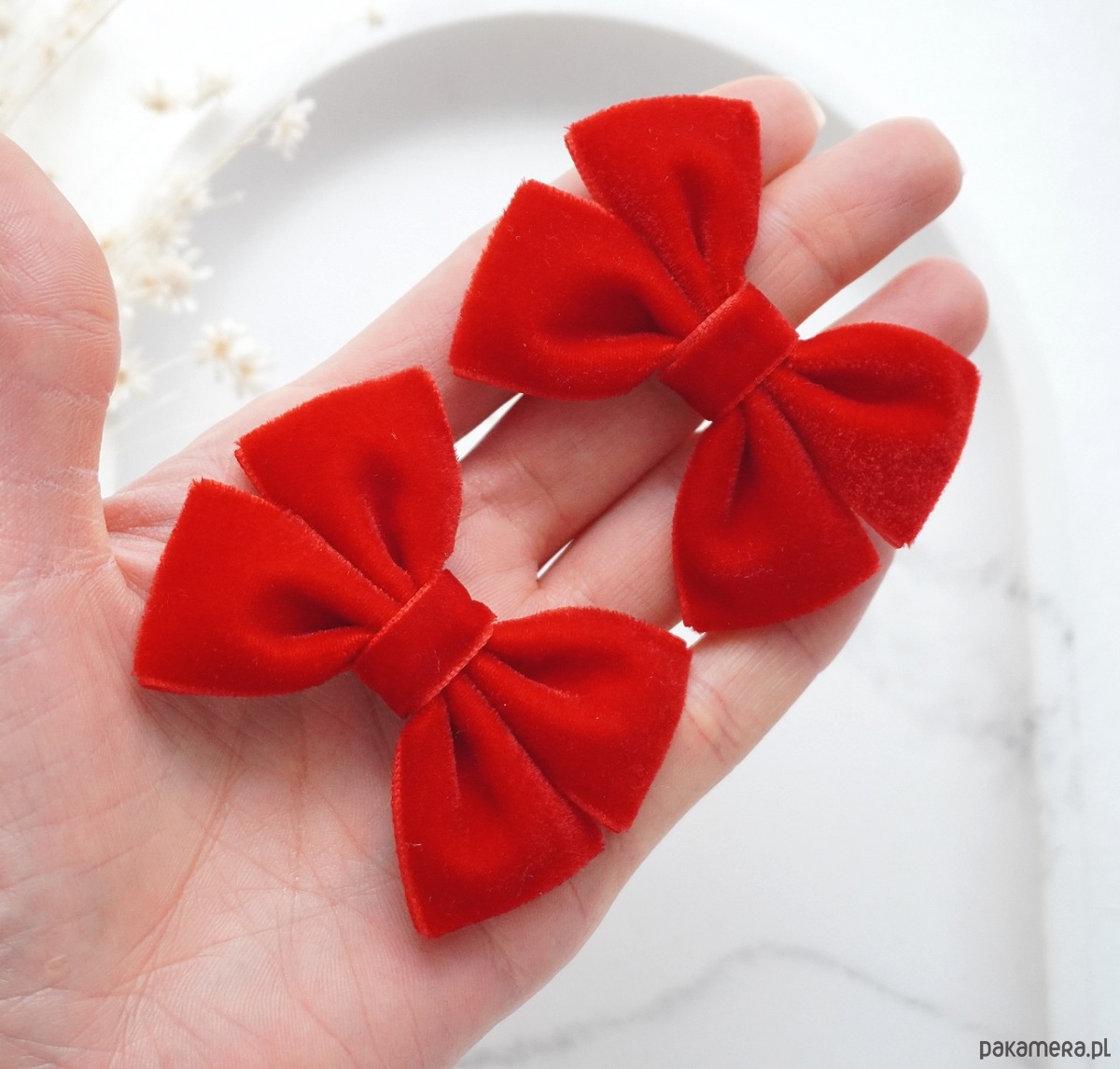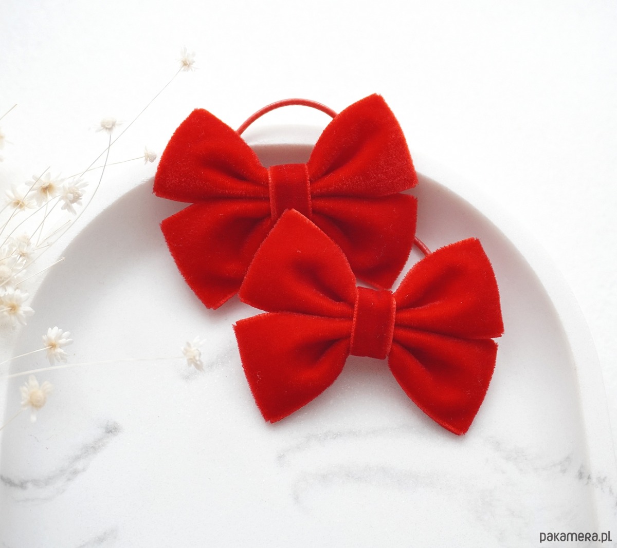 Gumki do włosów świąteczne kokardki czerwone WELUROWE SW08