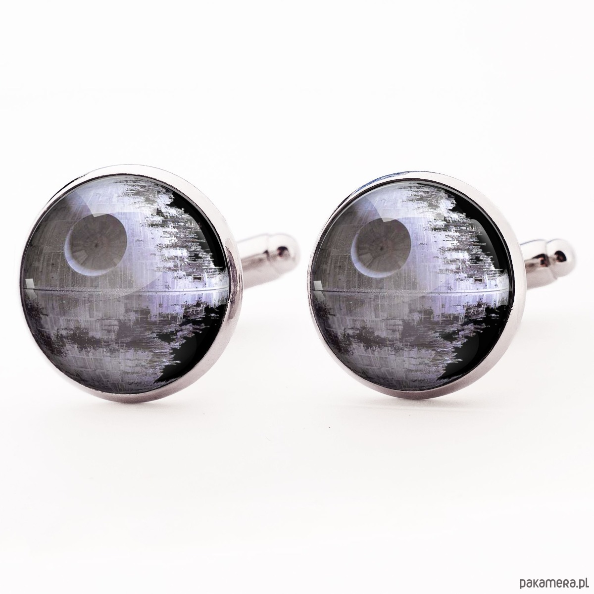 Ręcznie robione spinki do mankietów z wysokiej jakości grafiką offsetową pokrytą wypukłym, powiększającym szkiełkiem.
