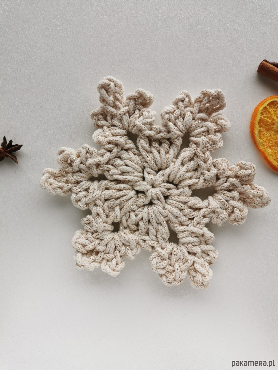 Piękne dekoracyjne gwiazdki - śnieżynki w kolorze kremowym ze złotą nitką. Niesamowicie pobłyskują w świetle lamp lub świec.