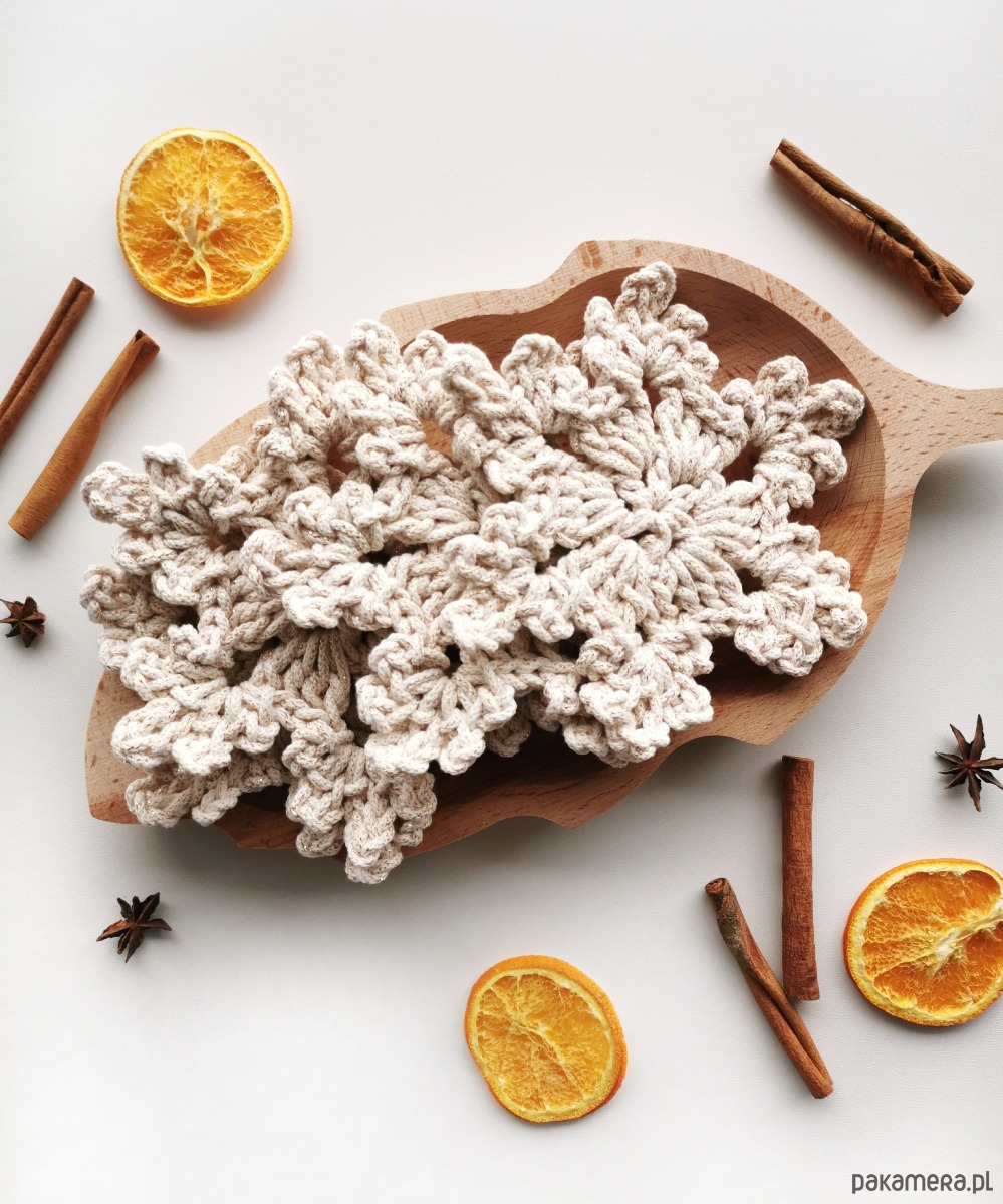 Mogą służyć jako podkładki pod kubek, jako dekoracja świątecznego stołu lub zawinąć na choince.