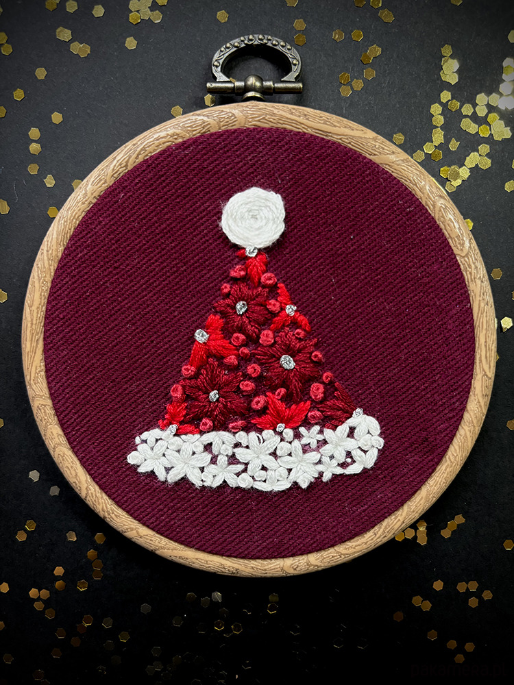 Ręcznie wykonany haft na bawełnianej tkaninie, oprawiony w ramkotamborek, gotowy do powieszenia w Twoim domu.