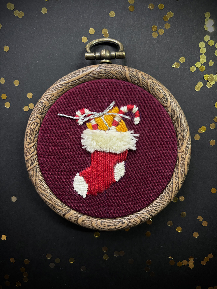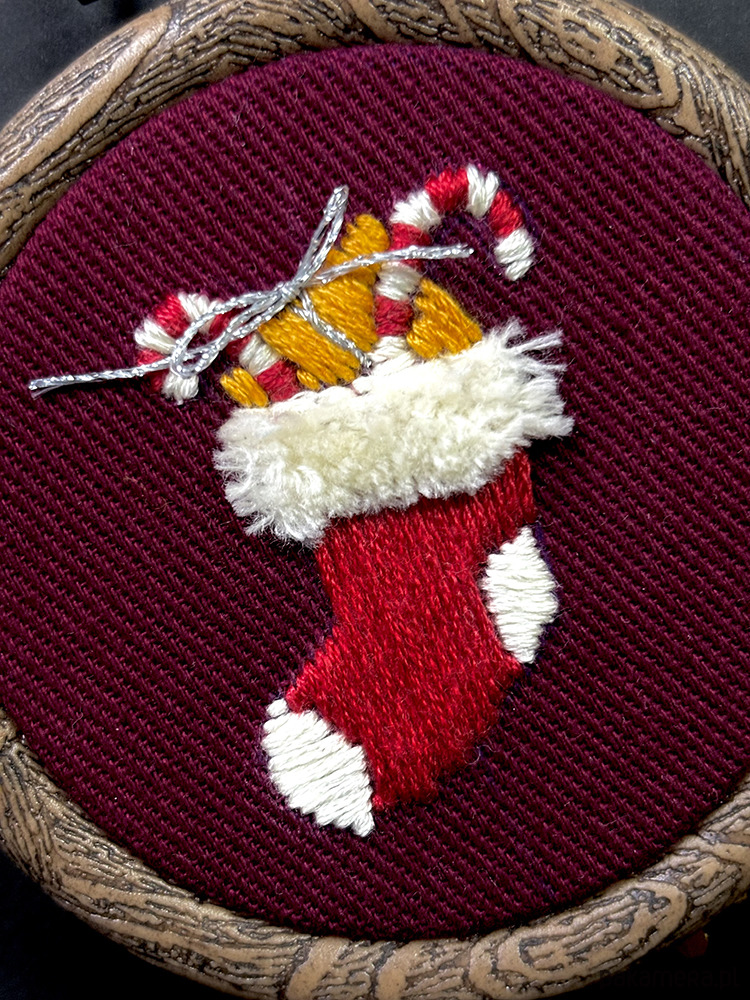 Skarpeta ma strukturalny haft - jest puchata w swej górnej części jak broda św. Mikołaja.