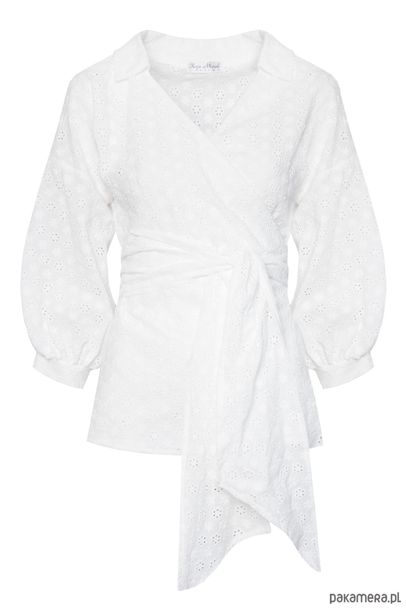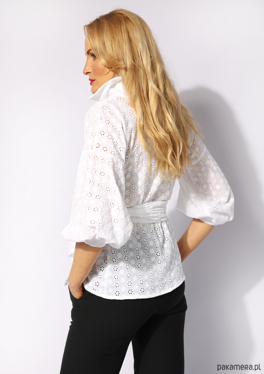 Biała elegancka koszula z szerokimi rękawami. Uszyta z bawełnianej przewiewnej tkaniny w delikatny haft.
