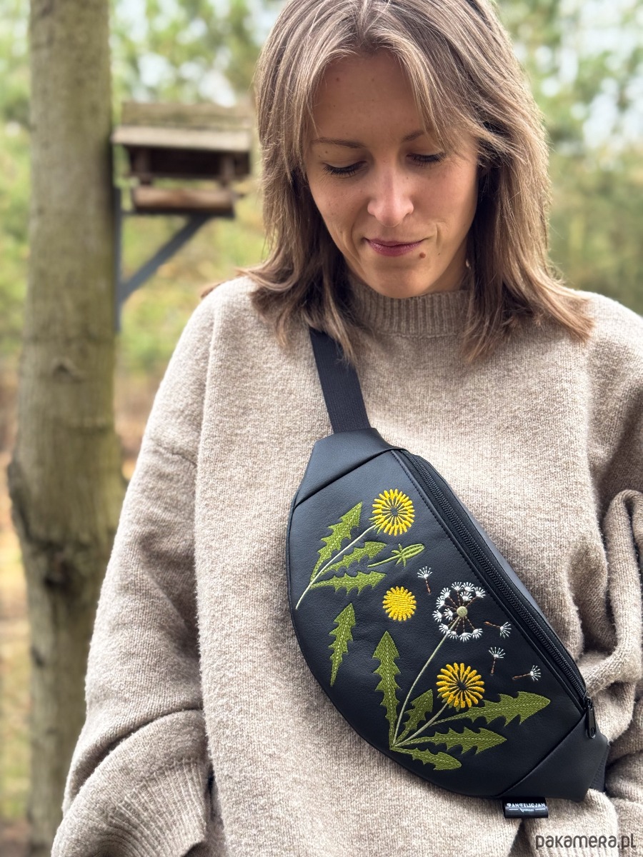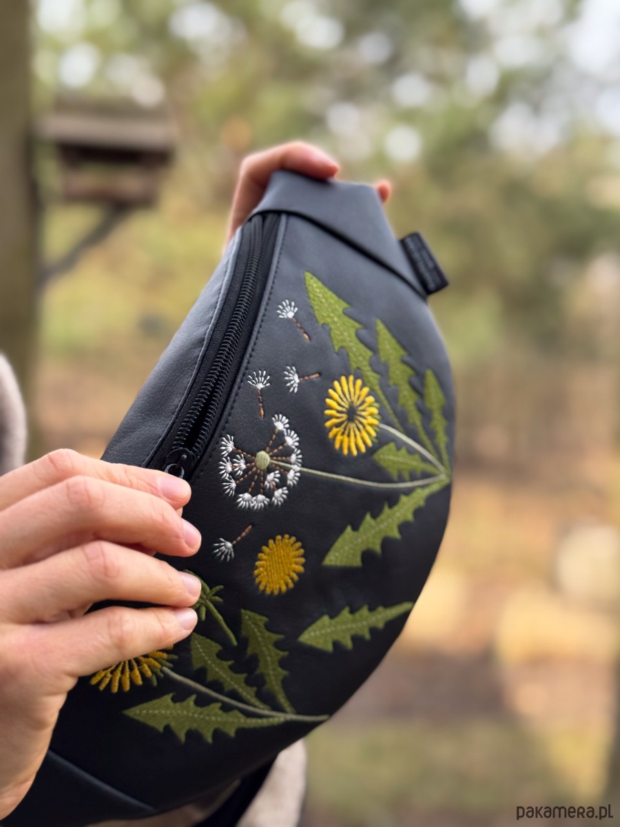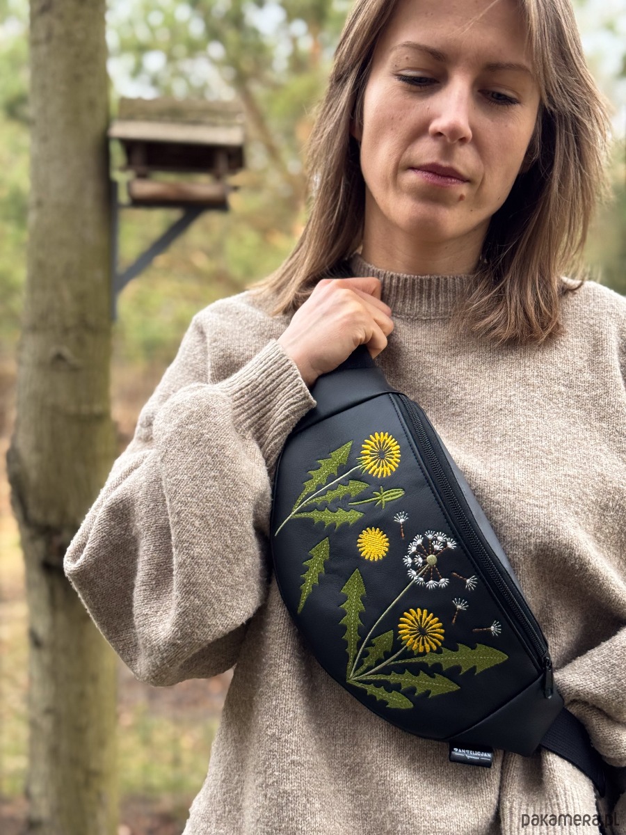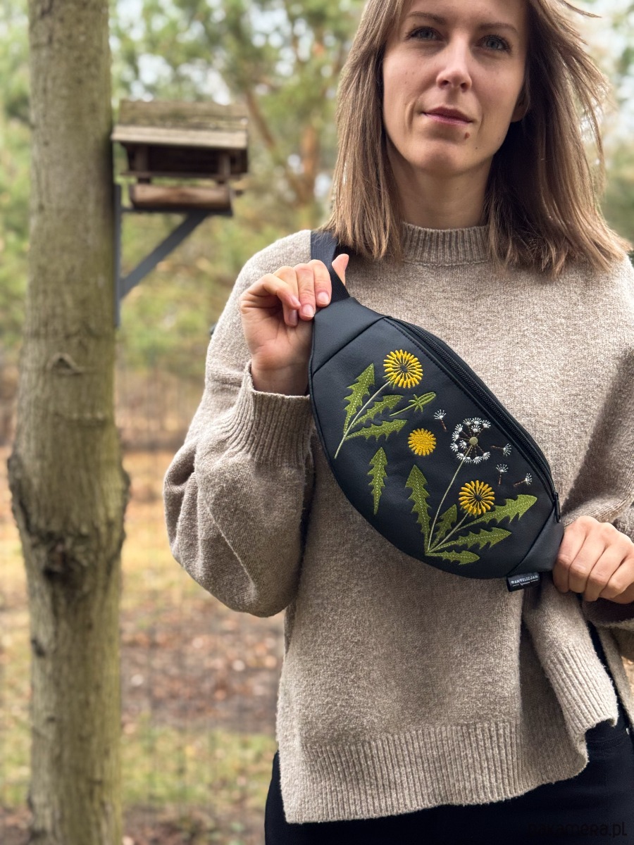 Mniszek lekarski to limitowana, ręcznie stworzona nerka z haftowaną aplikacją.