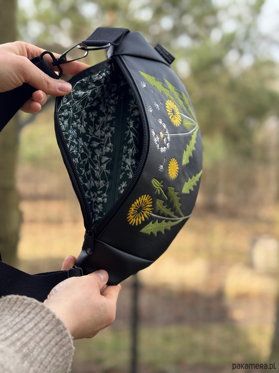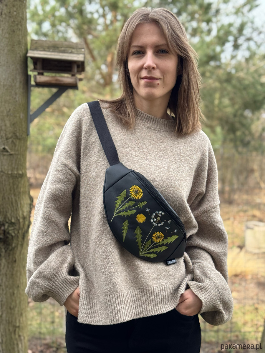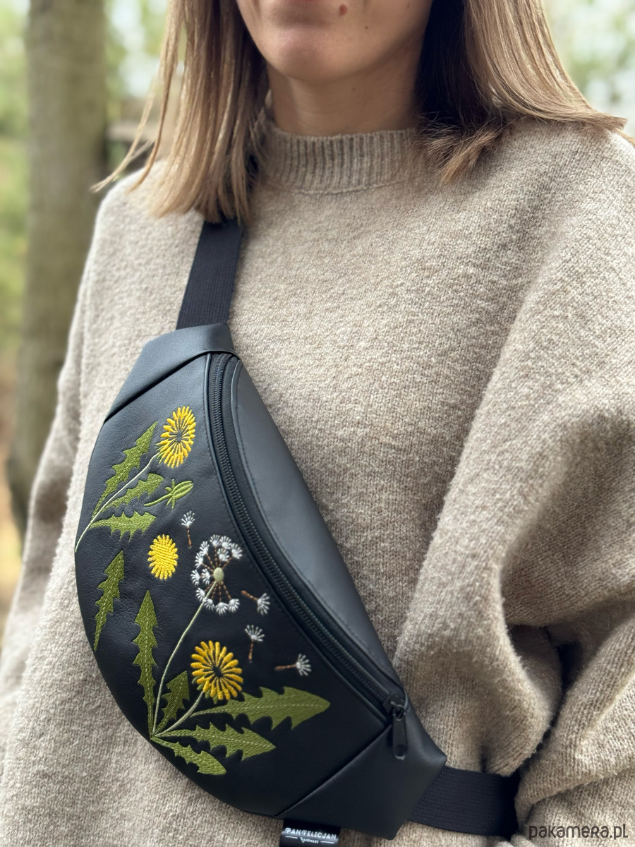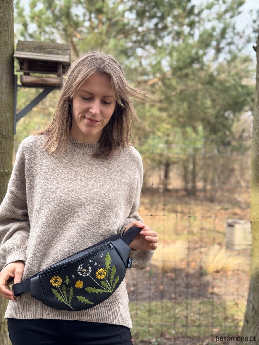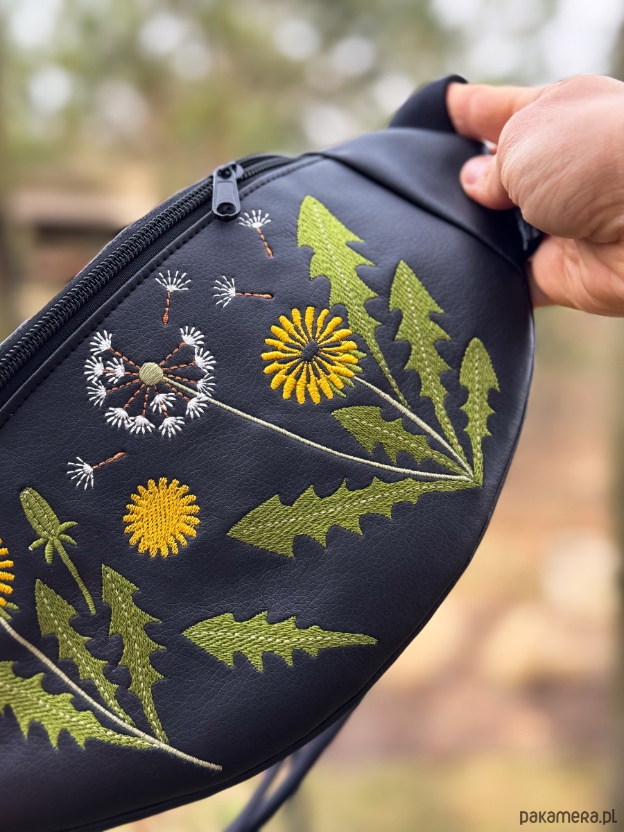 Mniszek lekarski to limitowana, ręcznie stworzona nerka z haftowaną aplikacją.