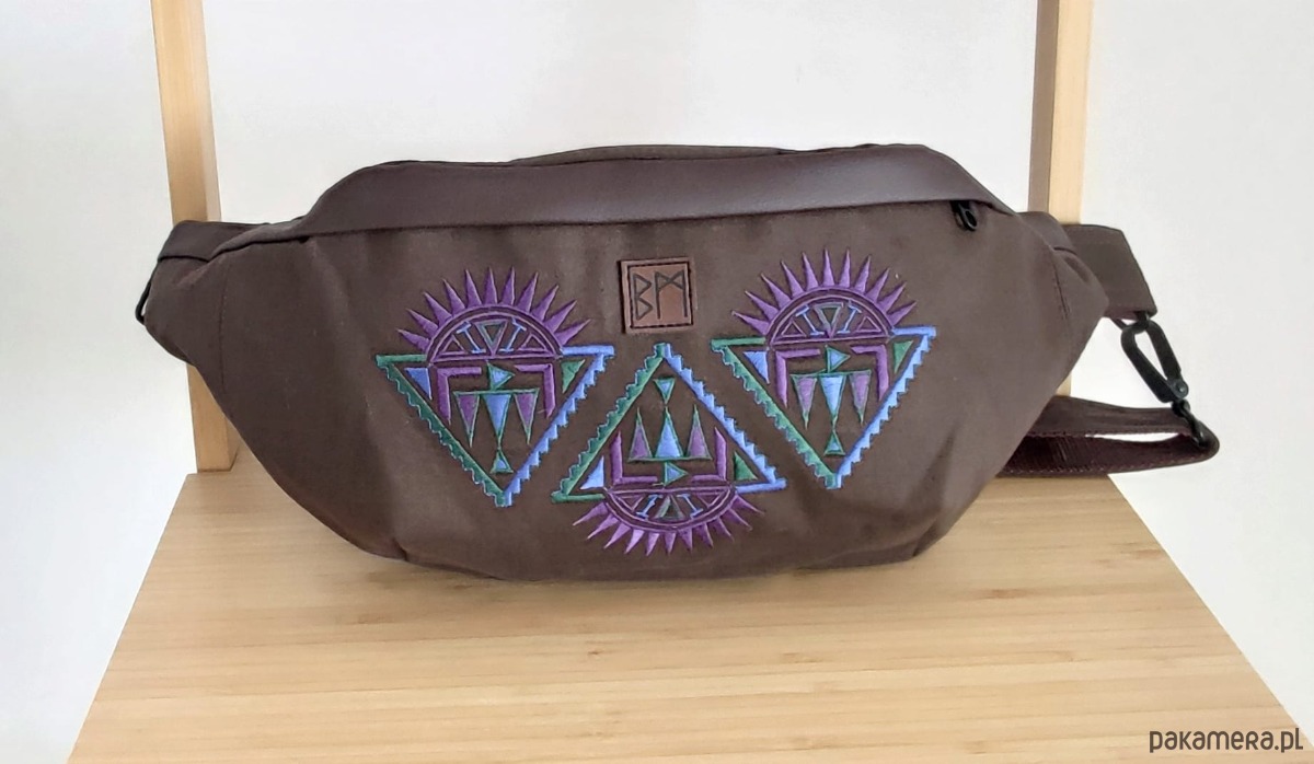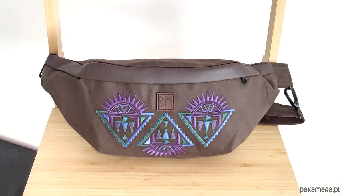 Solidna, bardzo duża nerka wykonana w calosci, łącznie z haftem, w mojej pracowni. Poza obszerną komorą główną posiada wewnętrzną kieszeń zamykaną na suwak.