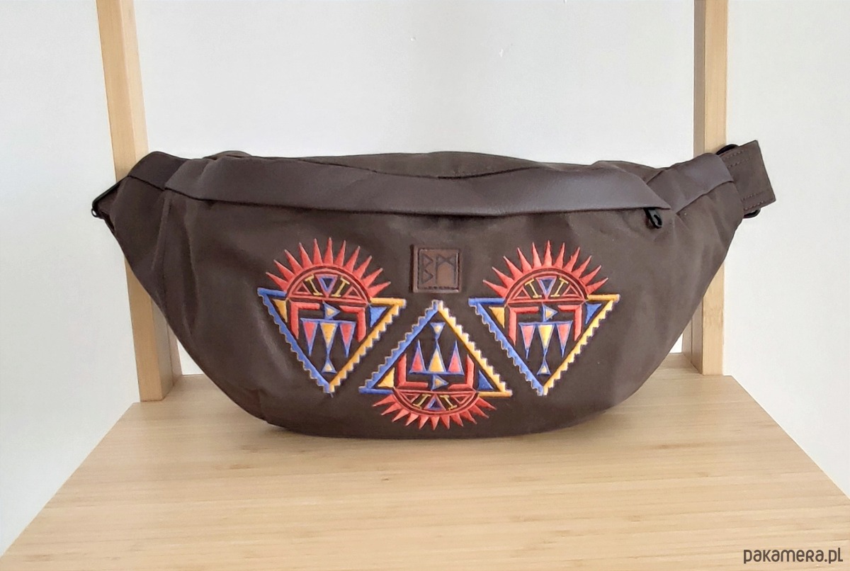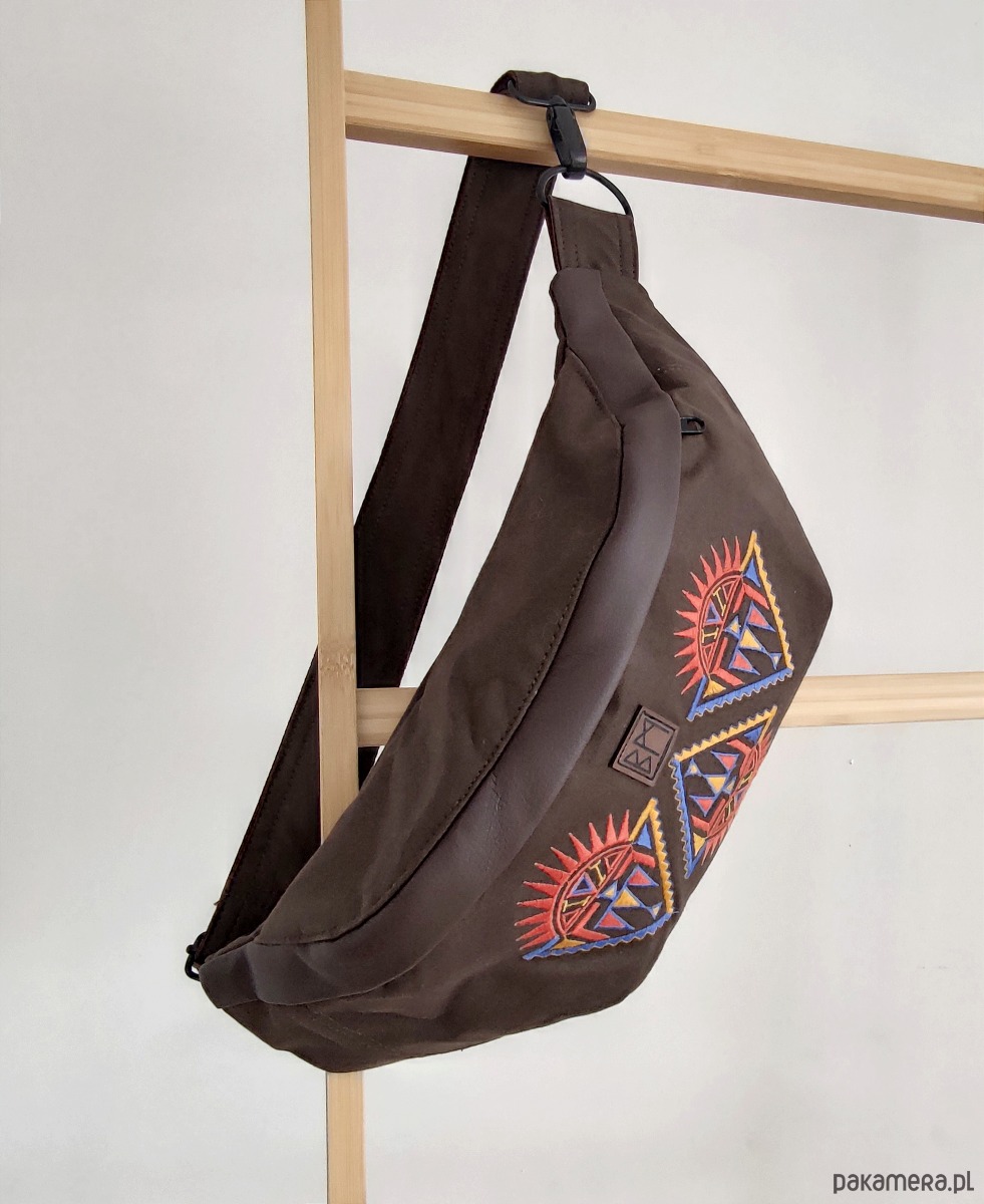 Solidna, bardzo duża nerka wykonana w calosci, łącznie z haftem, w mojej pracowni. Poza obszerną komorą główną posiada wewnętrzną kieszeń zamykaną na suwak.