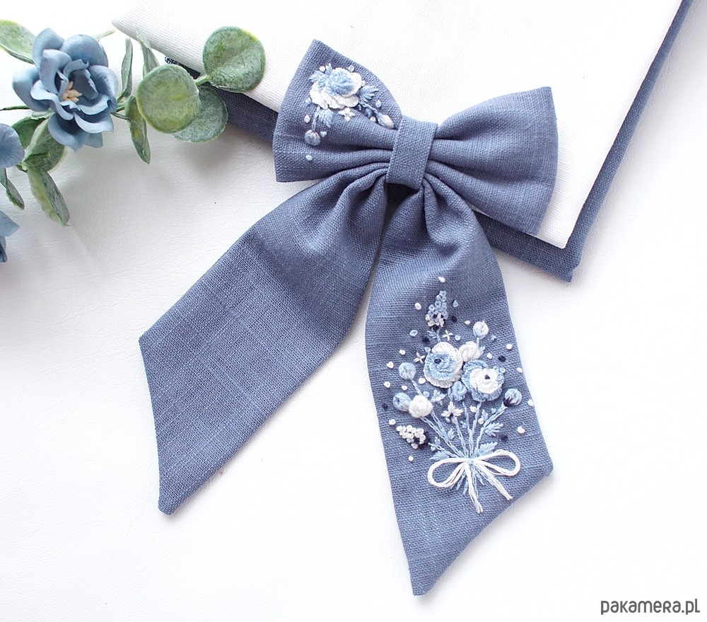 HAFTOWANA Spinka do włosów dla dziewczynki kokarda niebieska