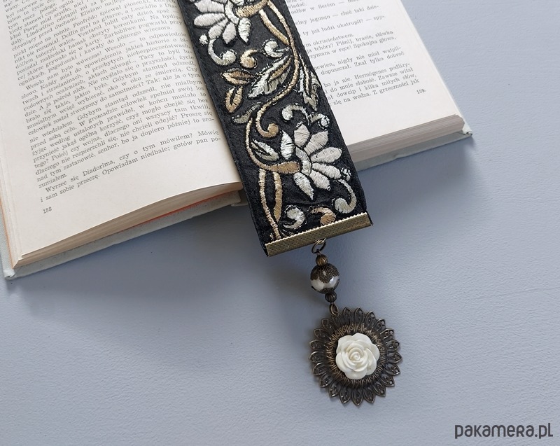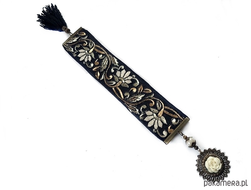 Unikalna, wykonana ręcznie zakładka do książki. Efektowna, haftowana tkanina vintage dodaje tej zakładce wytworności i sprawia, że jest ona jedynym egzemplarzem. To świetny prezent dla zapalonej czytelniczki - na specjalną okazję lub bez okazji.