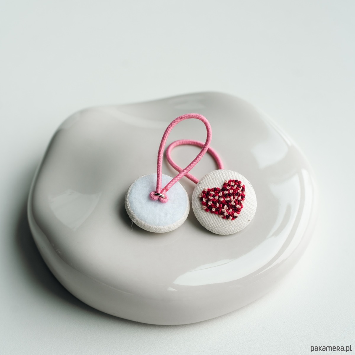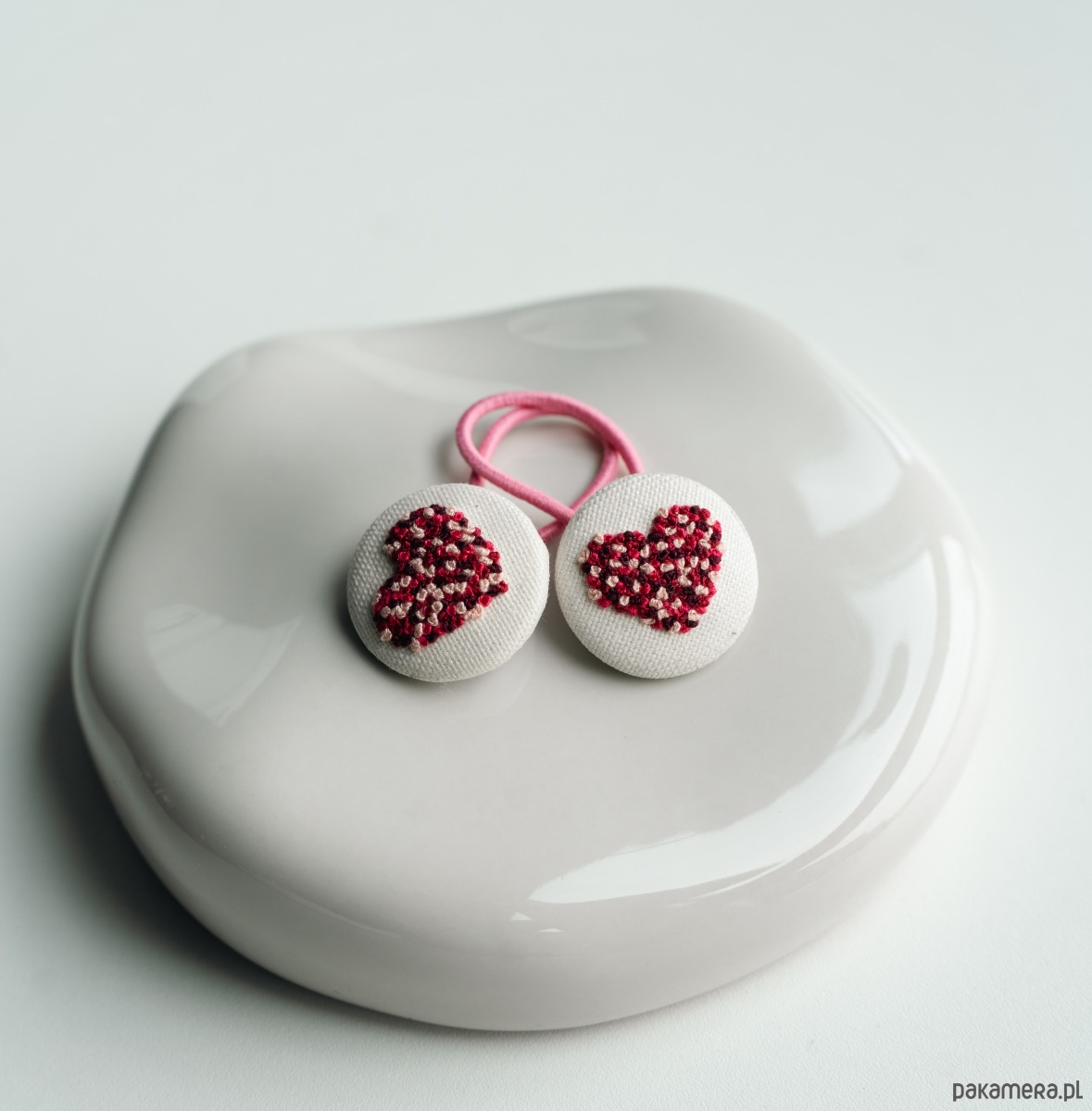 Zestaw dwóch haftowanych gumek do włosów z sercem
