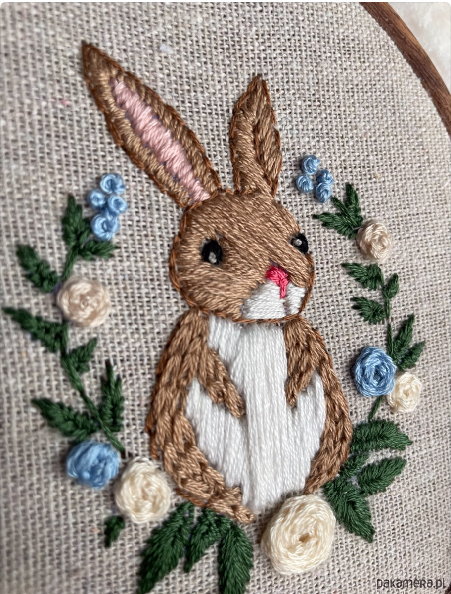 Oczywiście mogę wyhaftować króliczka na tamborku o innym wymiarze, kwestia ustalenia.