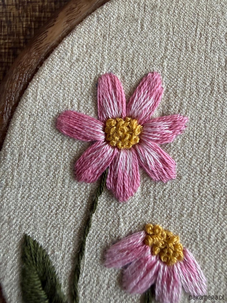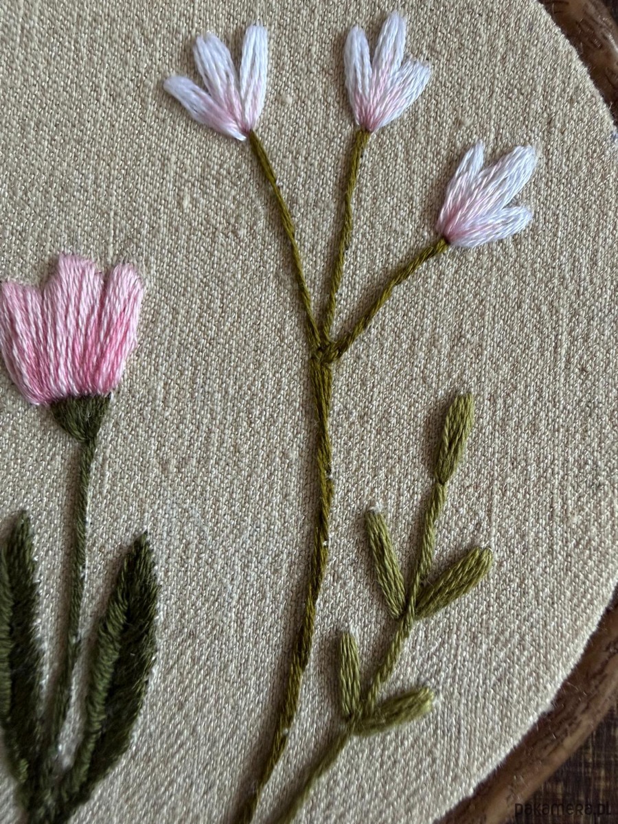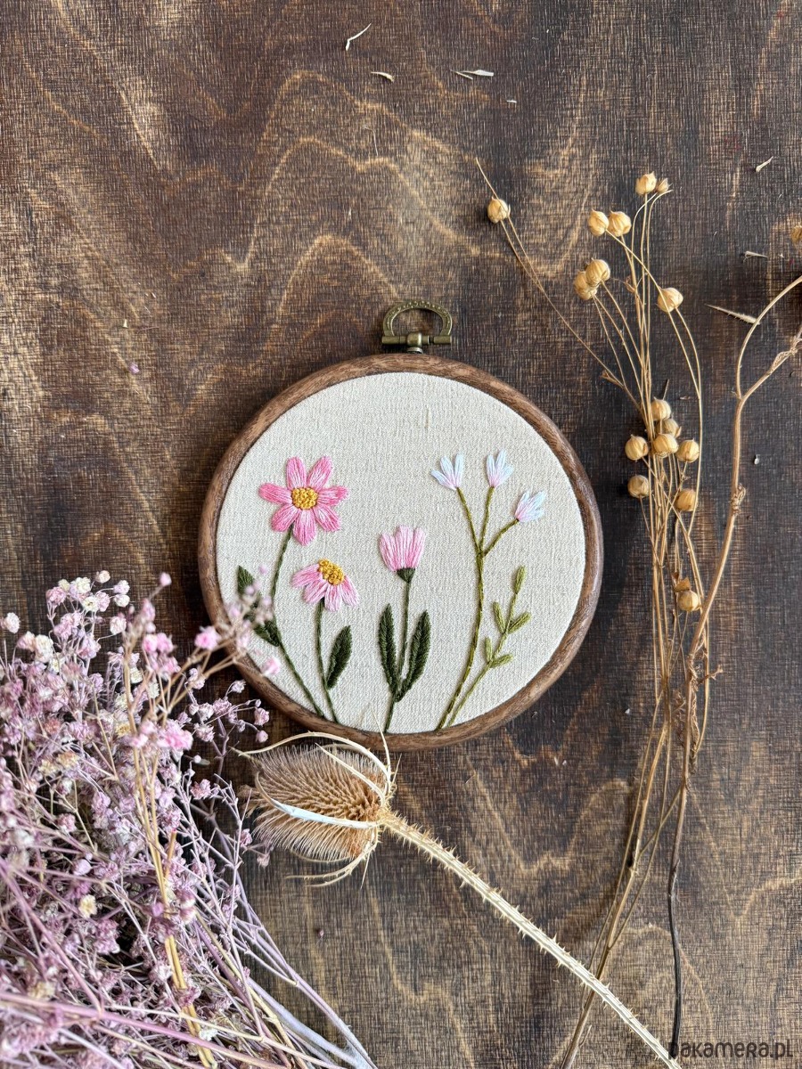 Haftowany obrazek "Różowe kwiaty"