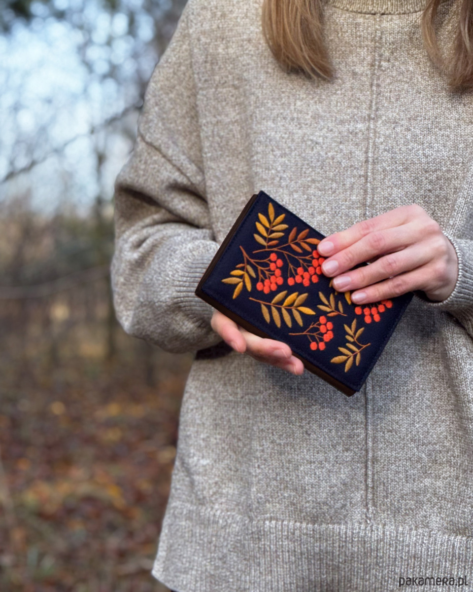 Haftowany portfel wykonany z impregnowanego papieru i bawełny. Jest 100% wegański.
