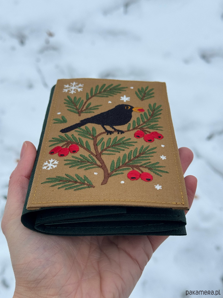 Haftowany portfel wykonany z impregnowanego papieru i bawełny. Jest 100% wegański.